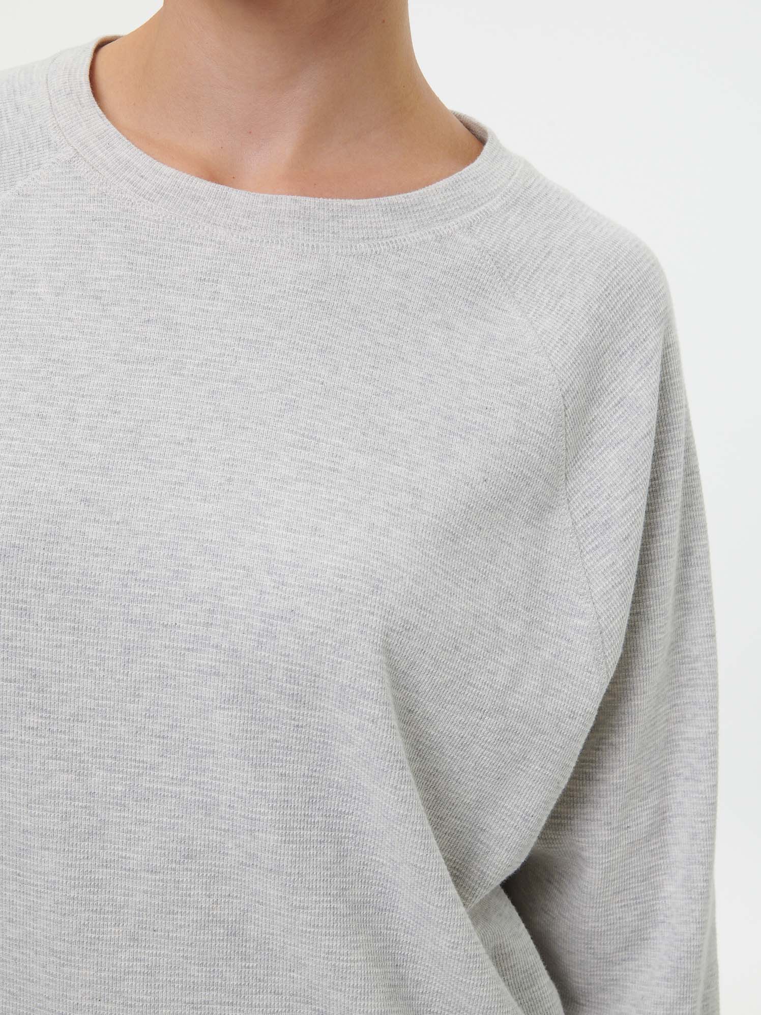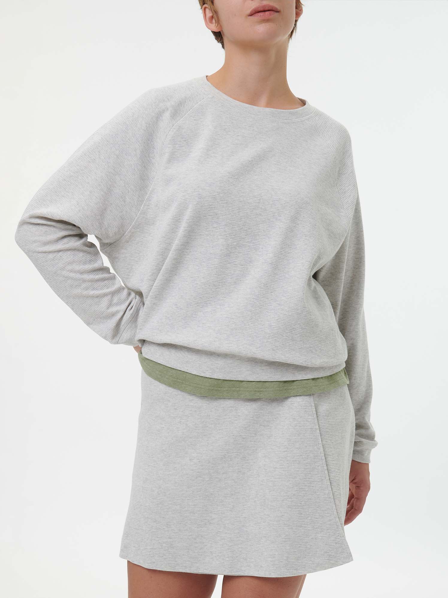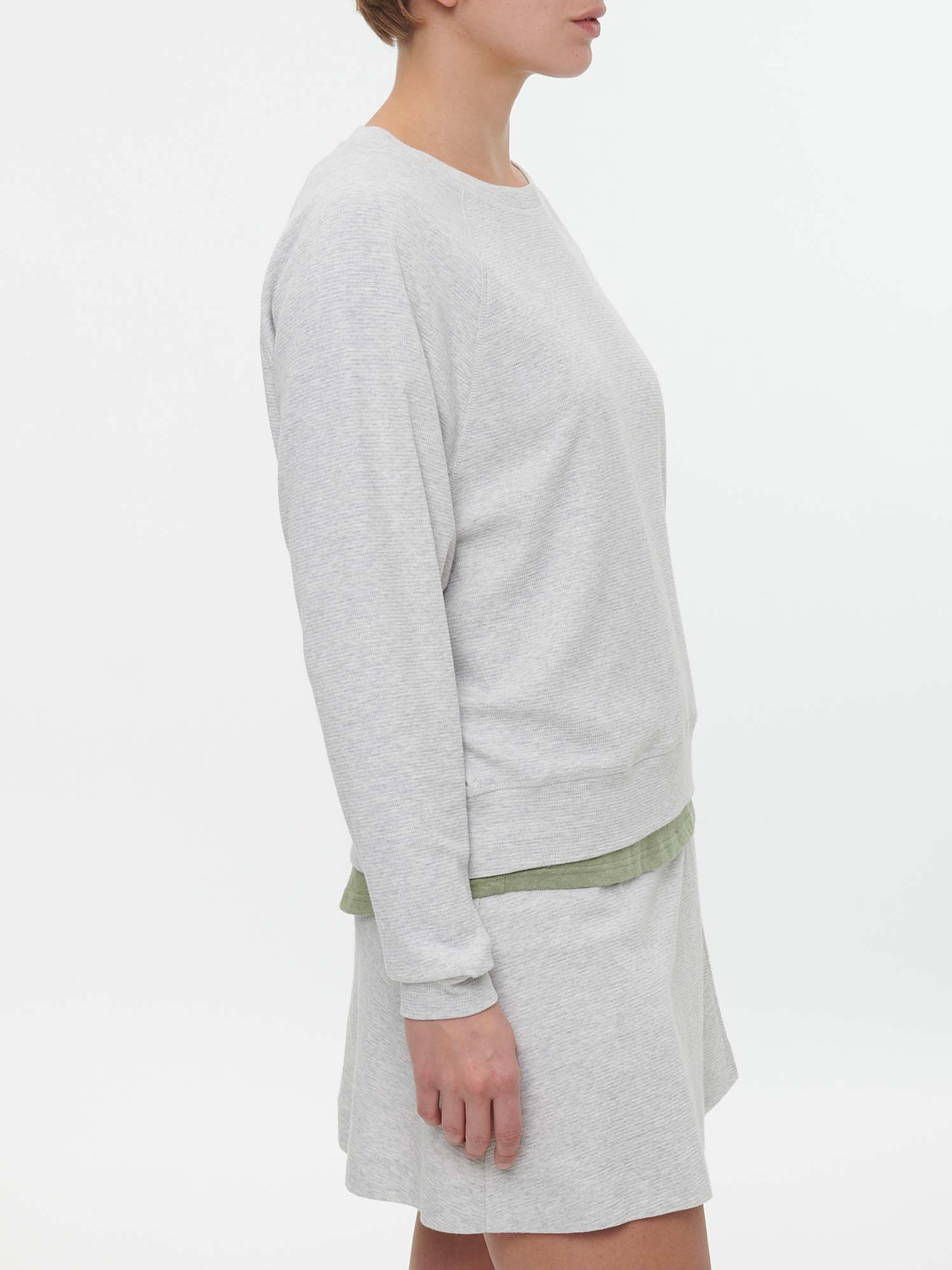 Aus leichtem Waffelpiqué, im lässigen Sweatshirt-Schnitt (dabei nicht zu kurz, nicht zu lang, nicht zu bollerig) und in klassischer Sweatshirt-Farbe: ein herrliches Shirt für den Übergang. Würde ich auch in anderen Farben sofort kaufen.