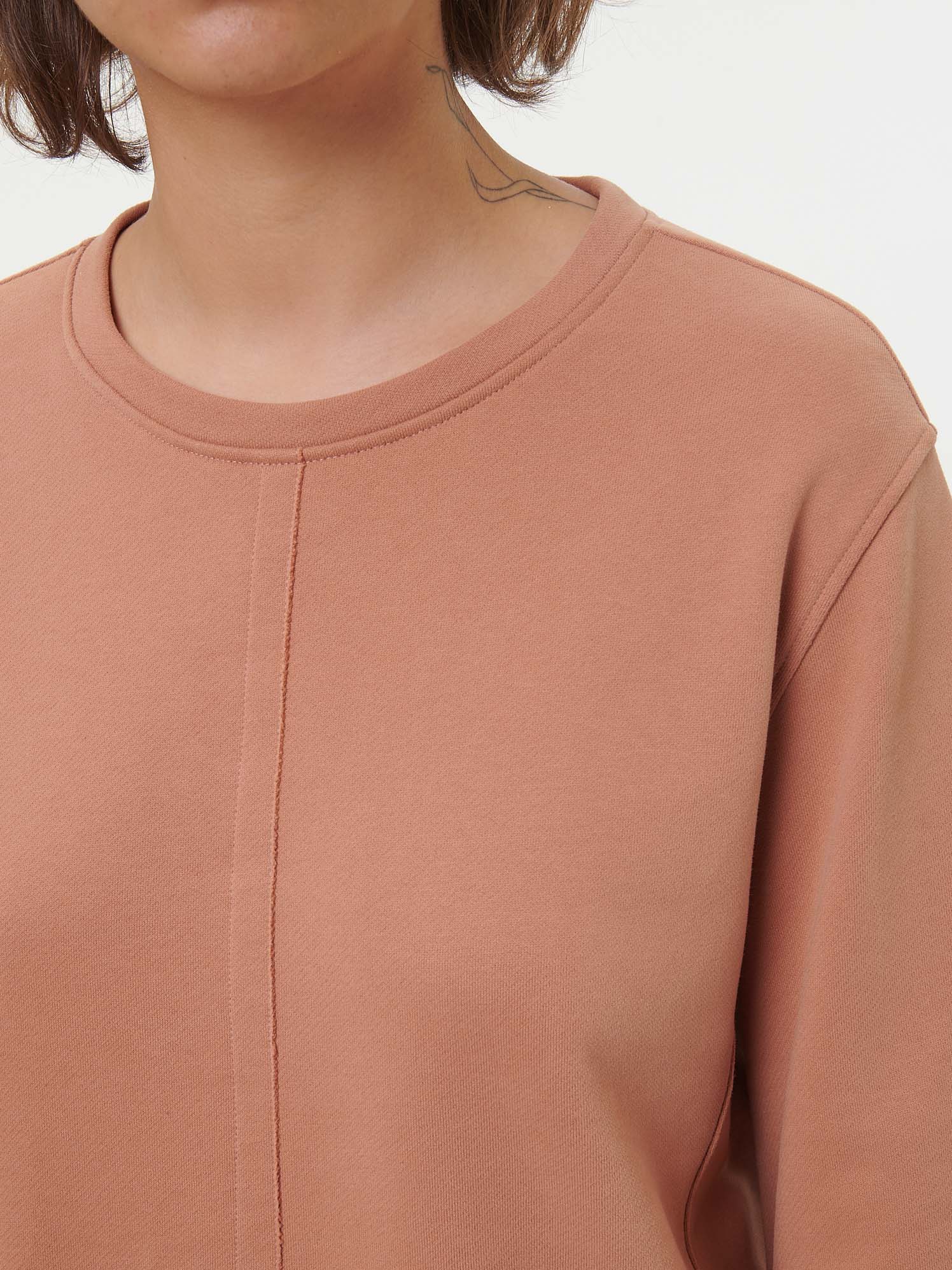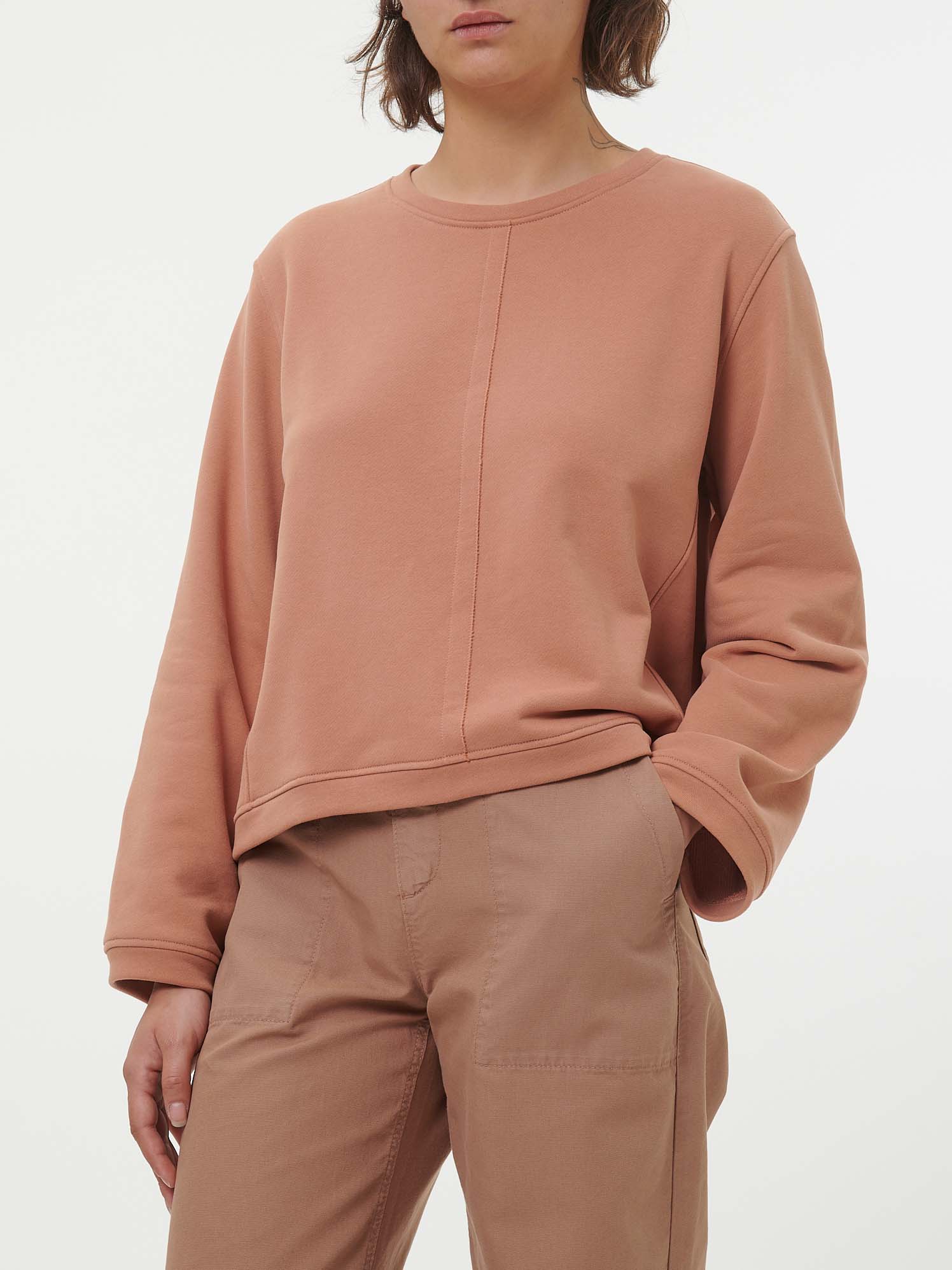 An Tragekomfort kaum zu überbieten: Sweatshirt aus reiner, hochwertiger Baumwolle kbA. Im Vordergrund steht die anschmiegsame Oberfläche der weichen French-Terry-Qualität. Der lockere Schnitt wird mit überschnittener Schulterpartie, einer schräg ins Vorderteil verlaufenden Nahtführung sowie einem zarten Nahtdetail in der vorderen Mitte abgerundet. Weitere Details: lange, sehr dezente Ballonärmel mit besonderer Verarbeitung.