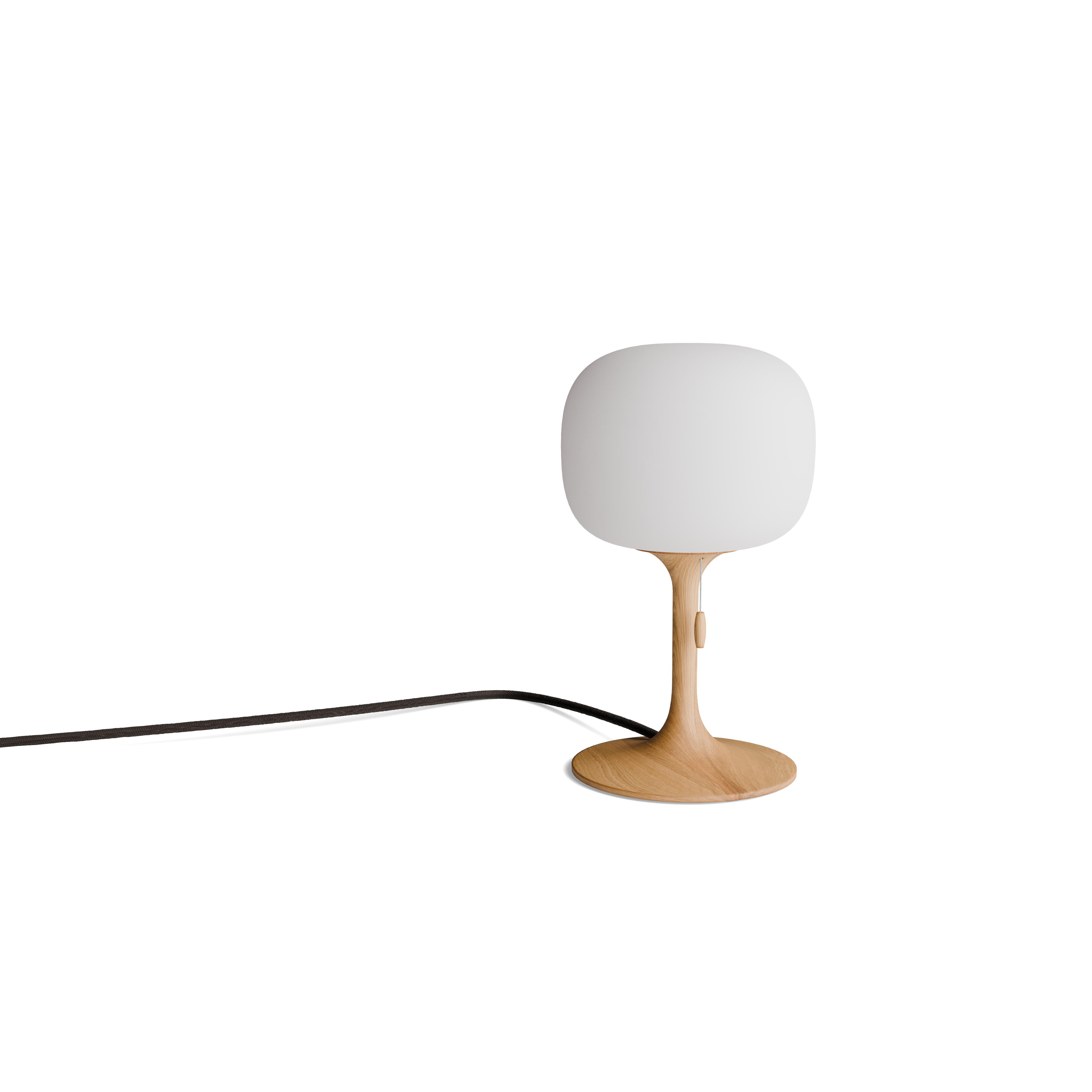 Die Schönheit Tandos zieht die Blicke auf sich – durch die sanft fließenden Linien der Holzteile, die mit dem organisch geformten Leuchtenschirm zu verschmelzen scheinen. Der Schirm gleicht in seiner Gestalt einer oben und unten etwas abgeflachten Kugel. Es ist nur eine Frage der Zeit, bis einen die unbändige Lust umfängt, diese Formen nicht nur mit den Augen, sondern auch mit den Händen zu erfassen.