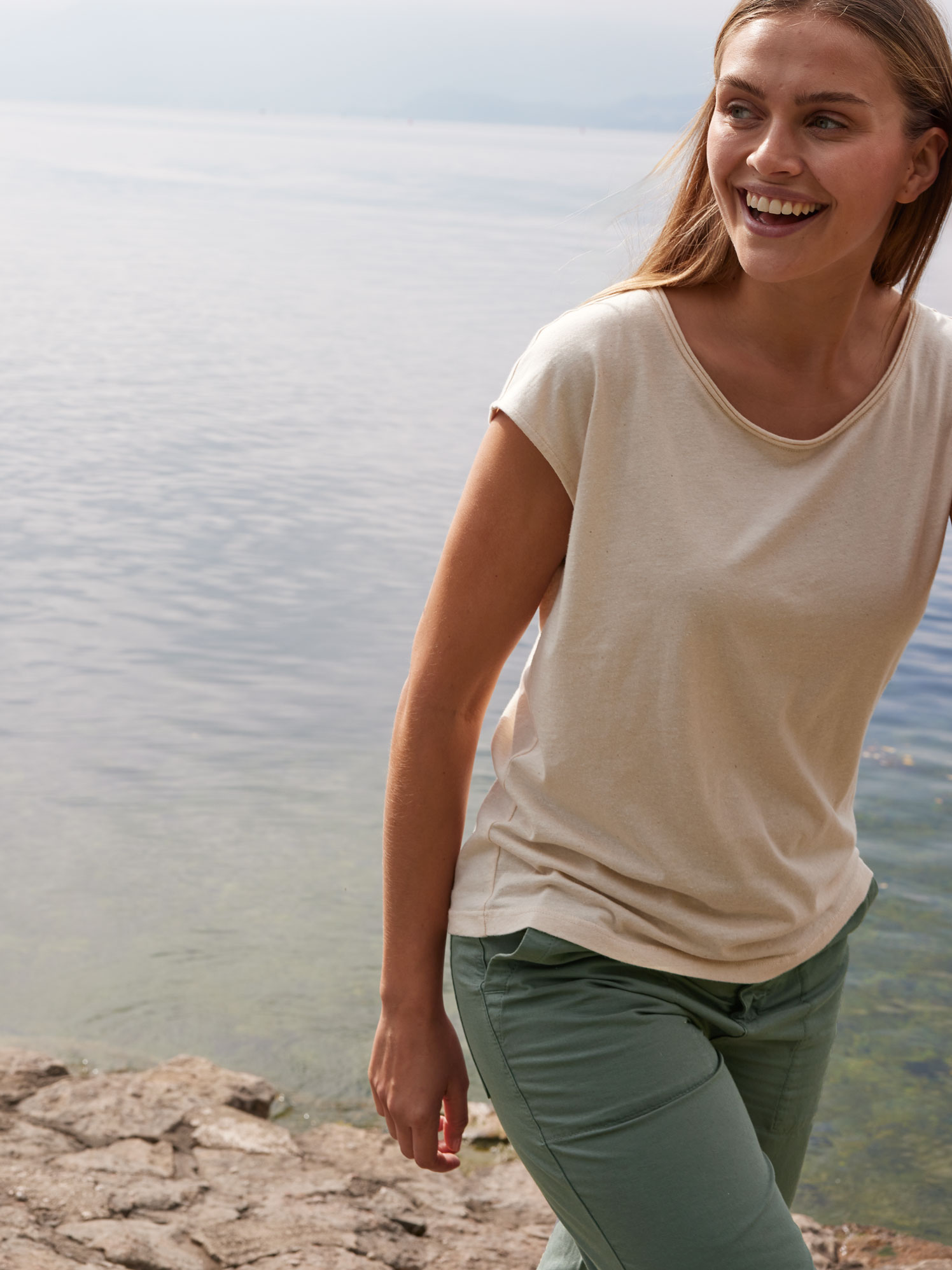 Für eine entspannte Silhouette: Top aus wertvollen Naturmaterialien – anschmiegsam, elegant und zeitlos-schön! Es entsteht aus weicher Baumwolle kbA in Kombination mit wertvollem Hanf kbA. Das locker geschnittene Modell besticht mit einer Rollsaumkante am Rundhalsausschnitt und überschnittener Schulterpartie.