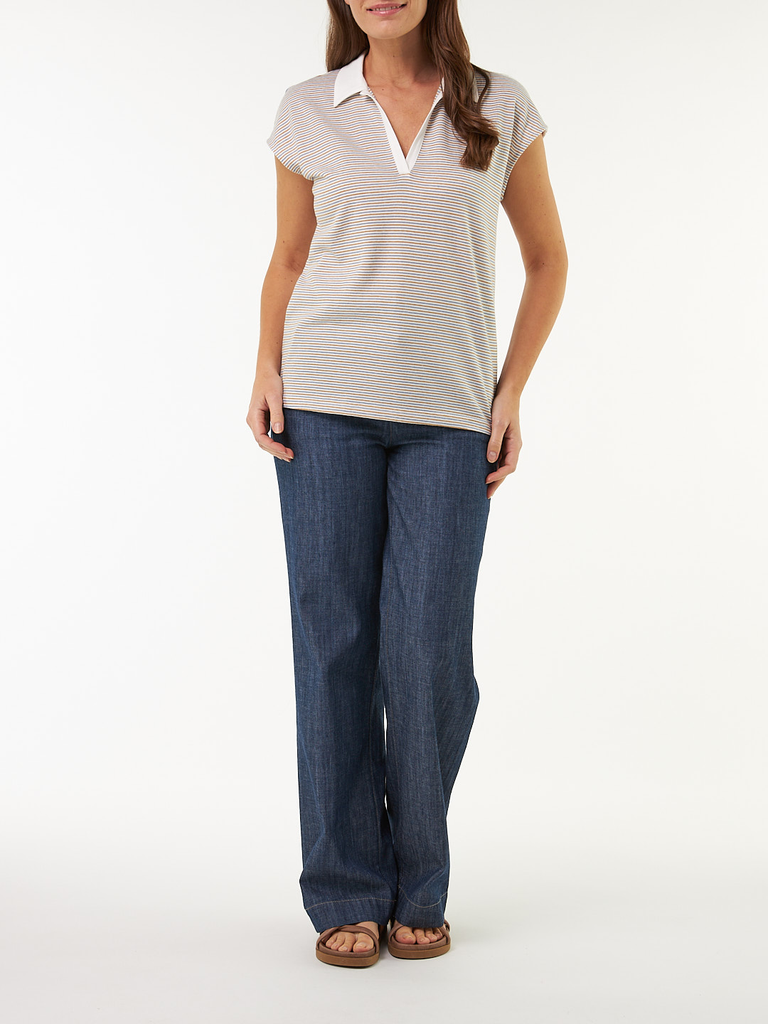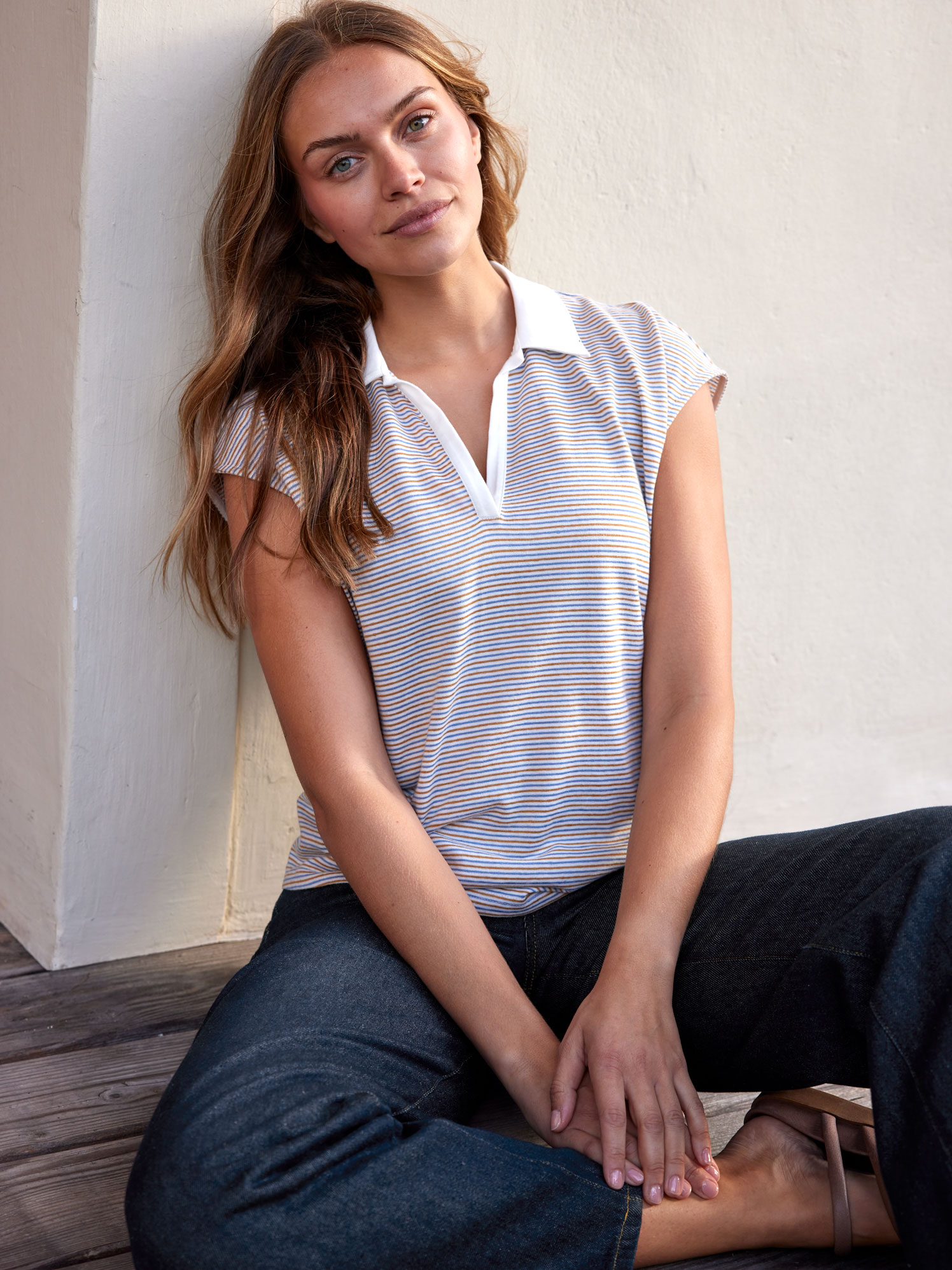 Leger geschnittenes Top in wertiger Qualität: edles Leinen kbA in Kombination mit weicher Baumwolle kbA. Der Kragen mit schmaler V-Ausschnittsleiste und die leicht überschnittene Schulterpartie unterstreichen den entspannten Charakter.