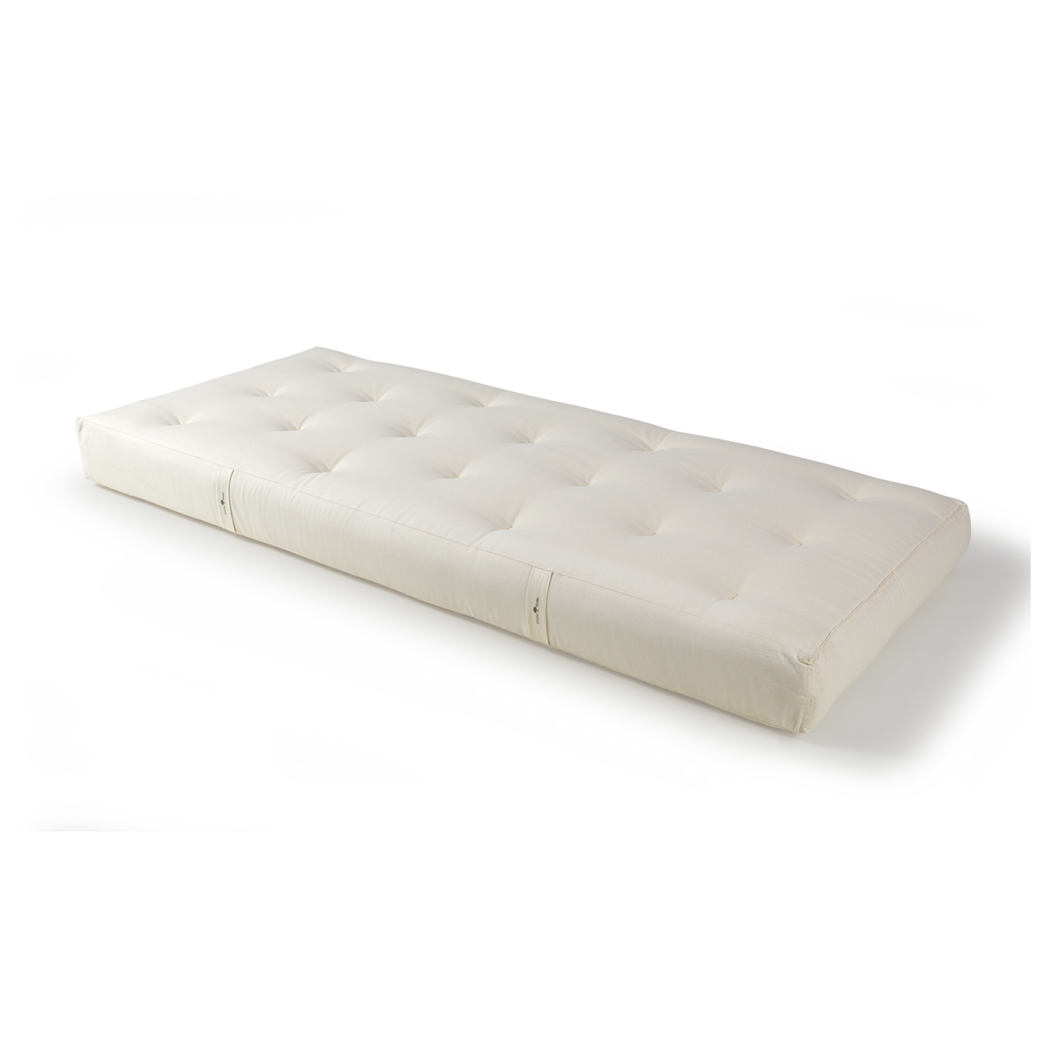Der sorgfältig genähte, strapazierfähige Bezug aus Baumwoll-Panama ist mit der Füllung durch die ganze Matratze hindurch fest versteppt.