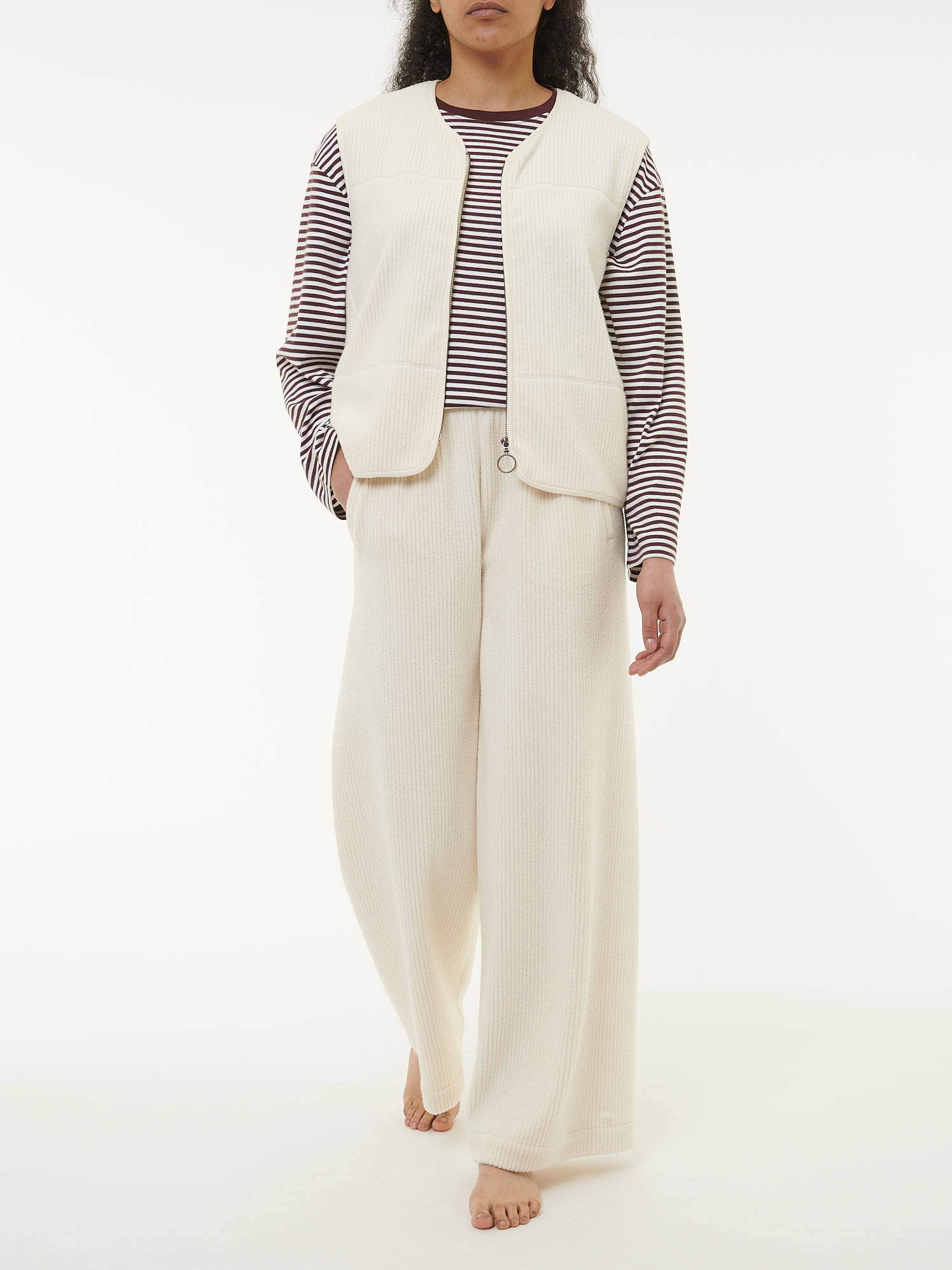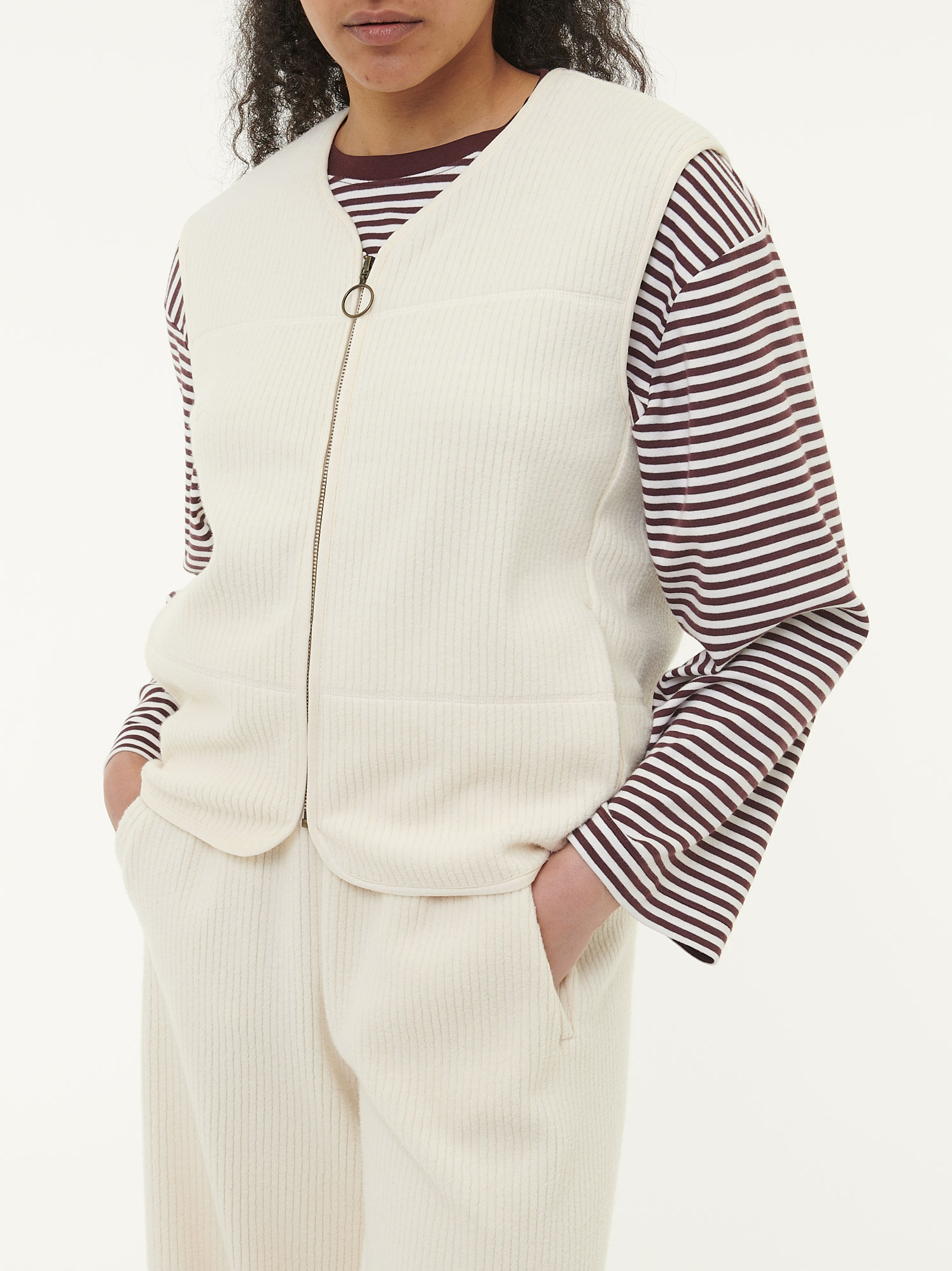 Ärmelloser Cardigan aus weicher Baumwolle kbA: Das locker geschnittene Modell hat einen Reißverschluss in vorderer Mitte, die anschmiegsame Teddy-Qualität mit feiner Ripp-Optik wird mit Flatlocknähten betont - – es entsteht ein gemütlicher Begleiter für den Alltag. Ein besonderes Highlight bietet der lockere Schnitt: bequem, unkompliziert und angenehm-kurz. Weitere Details: eingefasster Saum an Ärmel-, Hals- und Saumabschluss, seitliche Taschenöffnungen in der Naht