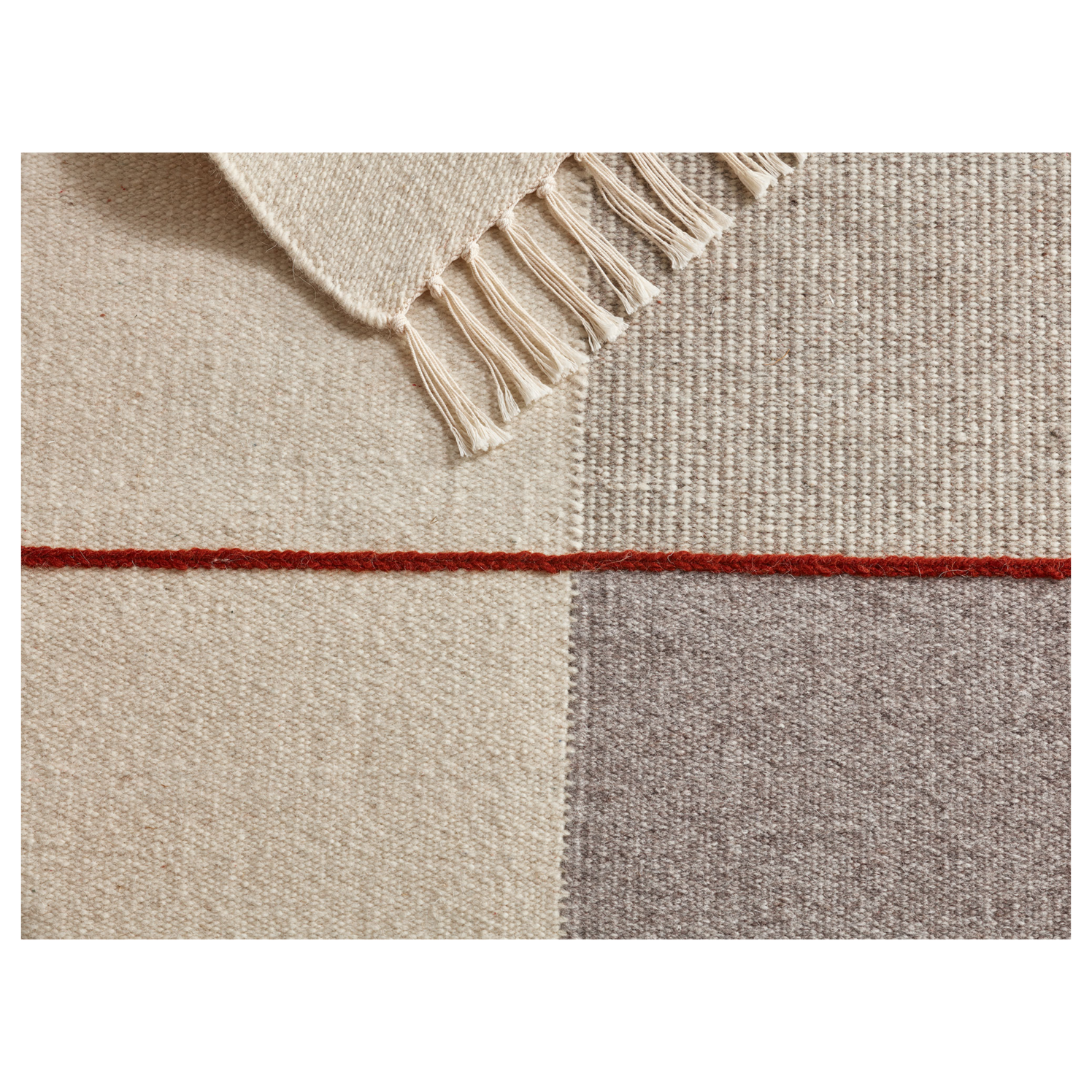 Markenzeichen des Kelims ist der Sumak: ein schmaler, leicht erhöhter Streifen aus Schussfäden in Kontrastfarben. Wir sind keine Freunde inflationär verwendeter Superlative, aber: Im Hinblick auf Design, biologisch zertifizierte Naturfasern, Ökologie, Handwerkstechnik und Fertigung in Mitteleuropa ist der Kelim Mata tatsächlich einzigartig.