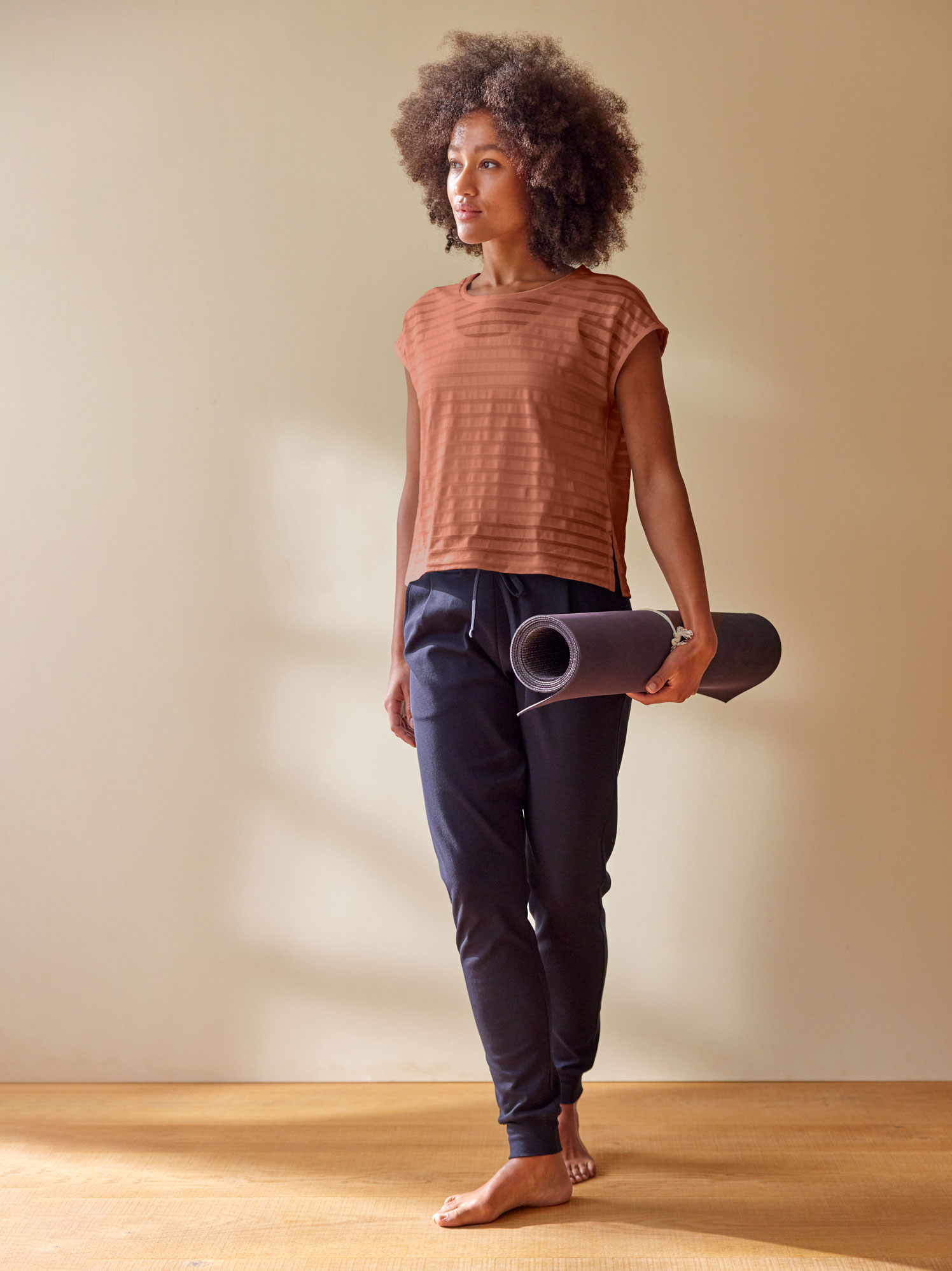 Wohlfühlprodukt für Zuhause und die Yogastunde, sehr bequem geschnitten dank der Bundfalten und angenehm weicher Stoff, der sich wunderbar anfühlt