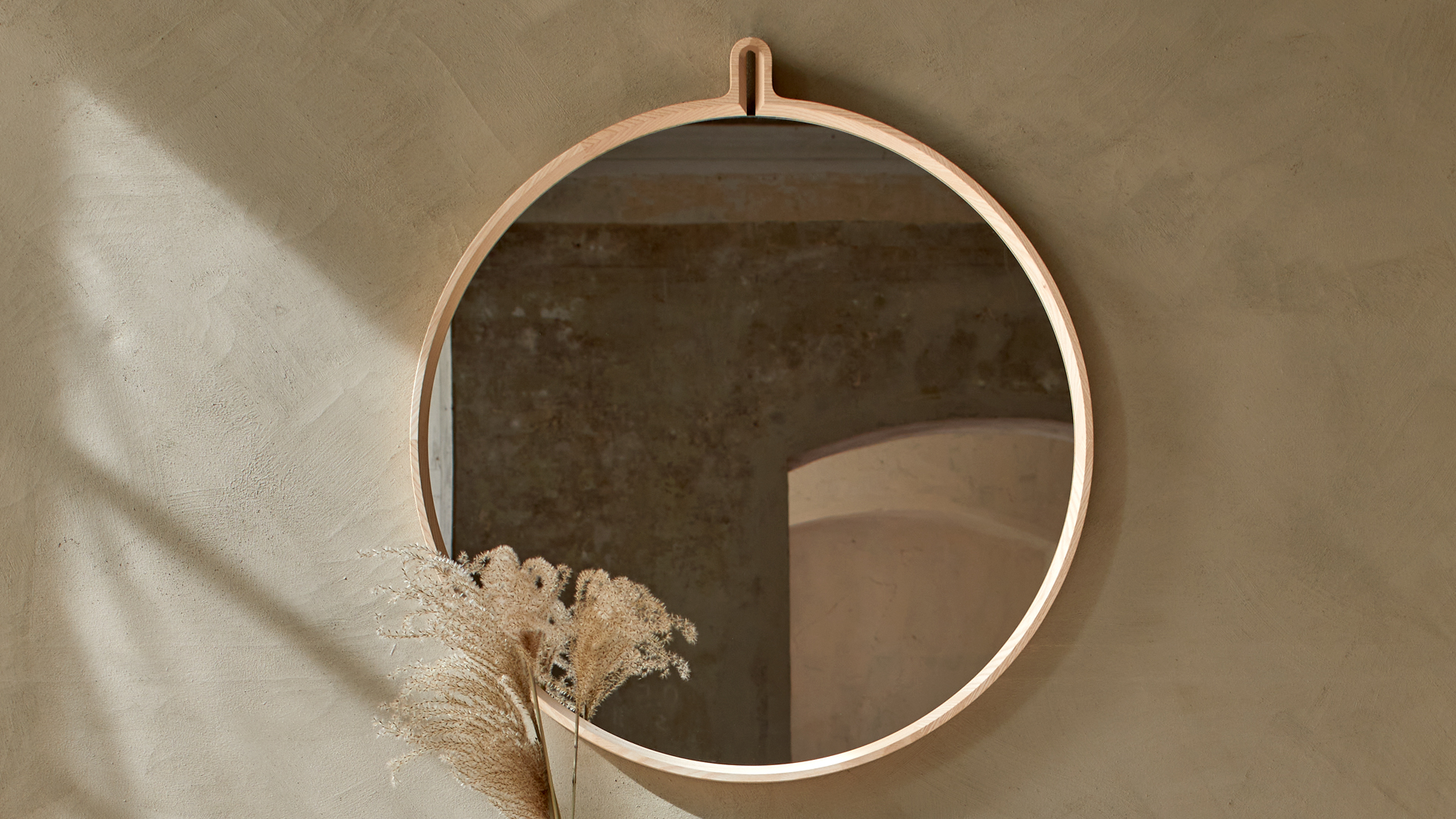 Besondere Beachtung verdient der nicht eben alltägliche, aufwendig gefertigte, zarte Holzrahmen, der in einer „Holzschlaufe“ mündet, die als Aufhängung dient. Der Rahmen ist wandseitig gerundet und verleiht damit dem Spiegel Abea einen schwebenden Ausdruck.