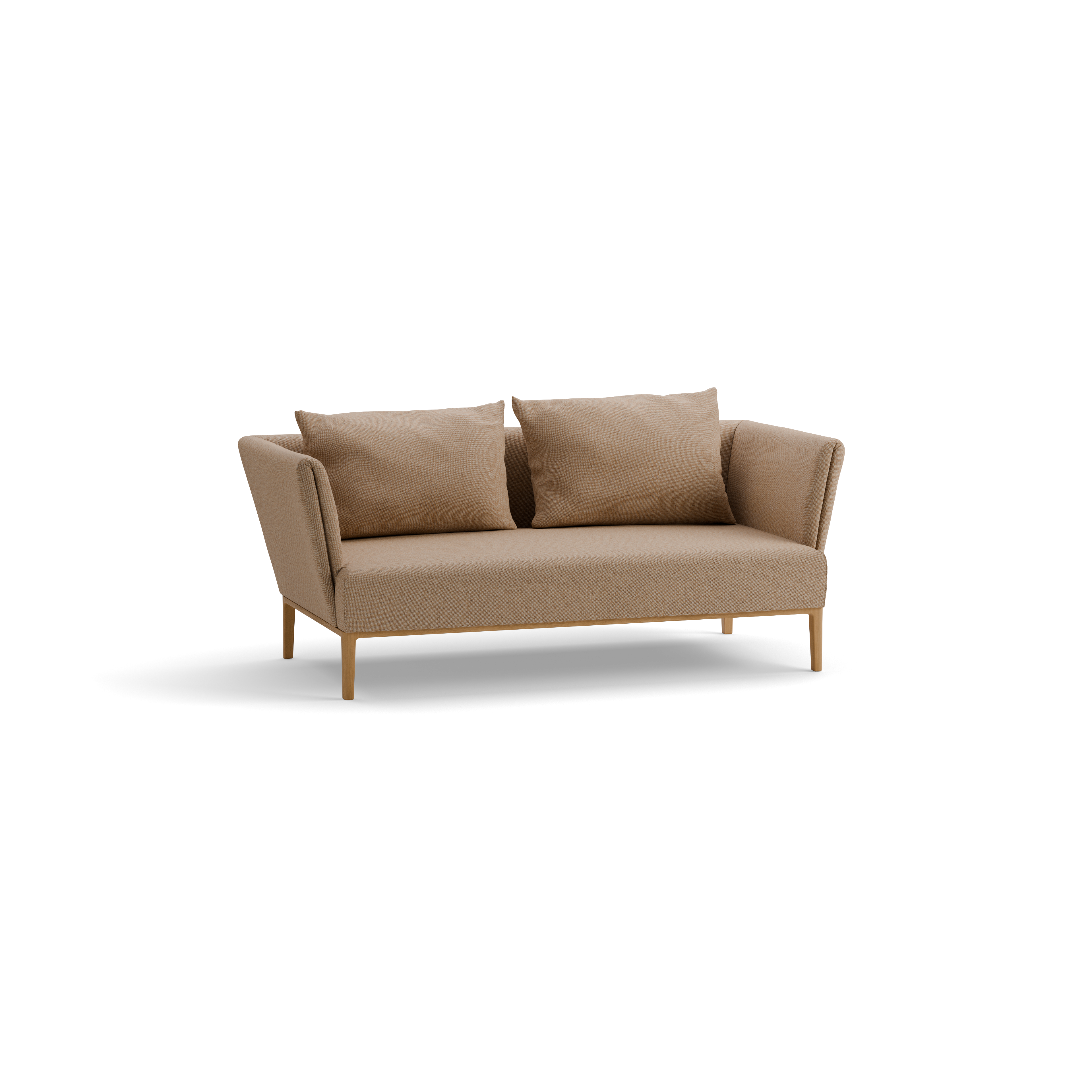Lorea ist ein elegantes Sofa, das aufgrund seiner optisch zurückhaltenden, schlanken Lehnen und des zarten Holzkorpus auch in kleineren Wohnzimmern eine gute Figur macht. Die bequeme Naturpolsterung und große Kissen sorgen für ebenso hohen wie ungezwungenen Sitz- und Liegekomfort. Gestaltungselement mit Augenzwinkern: die „gedoppelte“ Armlehne.