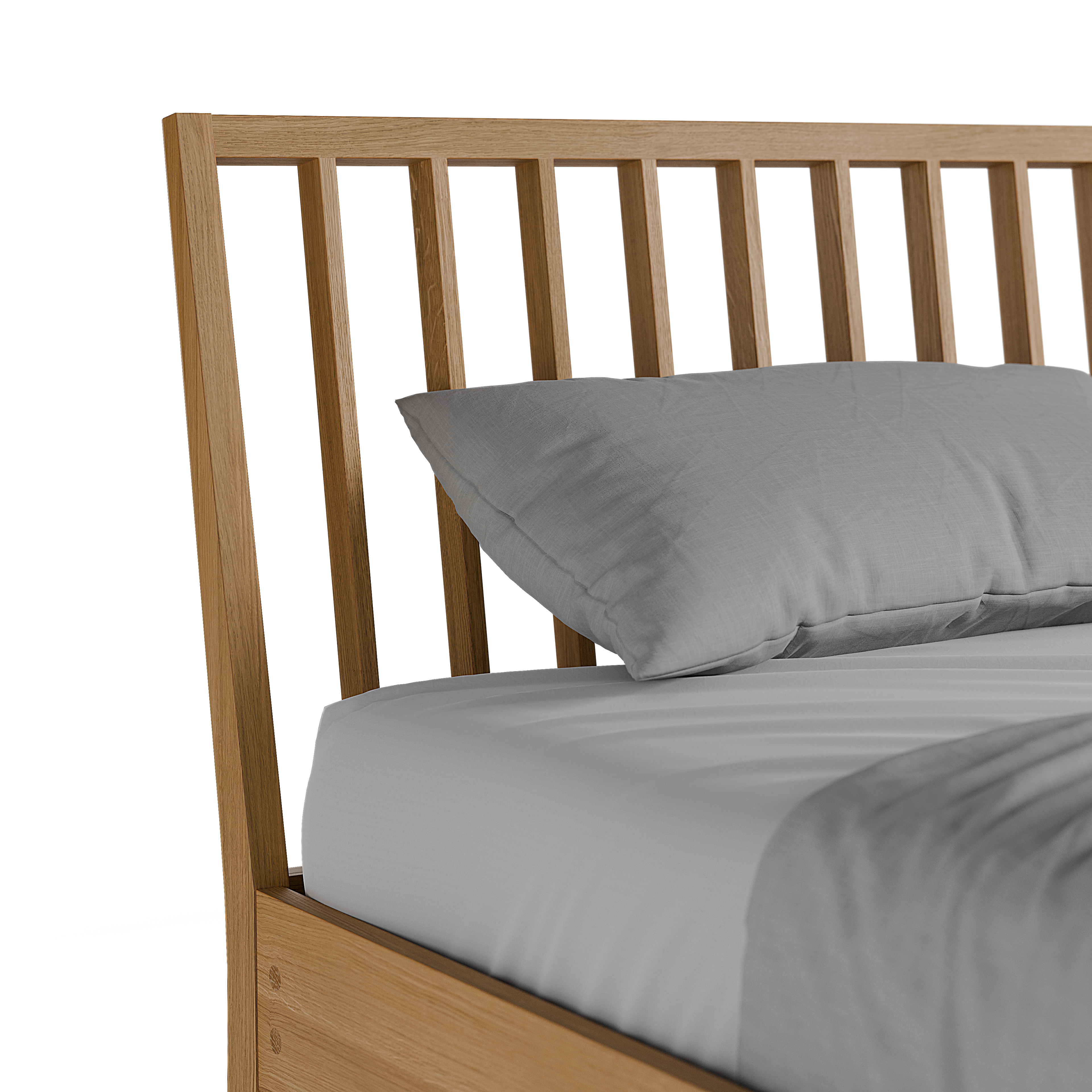Almeno ist das beliebteste Bett von Grüne Erde. Auch, weil es unser vielfältigstes ist. Sie können es in mehreren Holzarten und Modellvarianten wählen, wie hier mit einem feingliedrigen vertikalen Sprossenbetthaupt. Es verleiht dem Bett emporstrebende Anmut und ätherische Leichtigkeit.