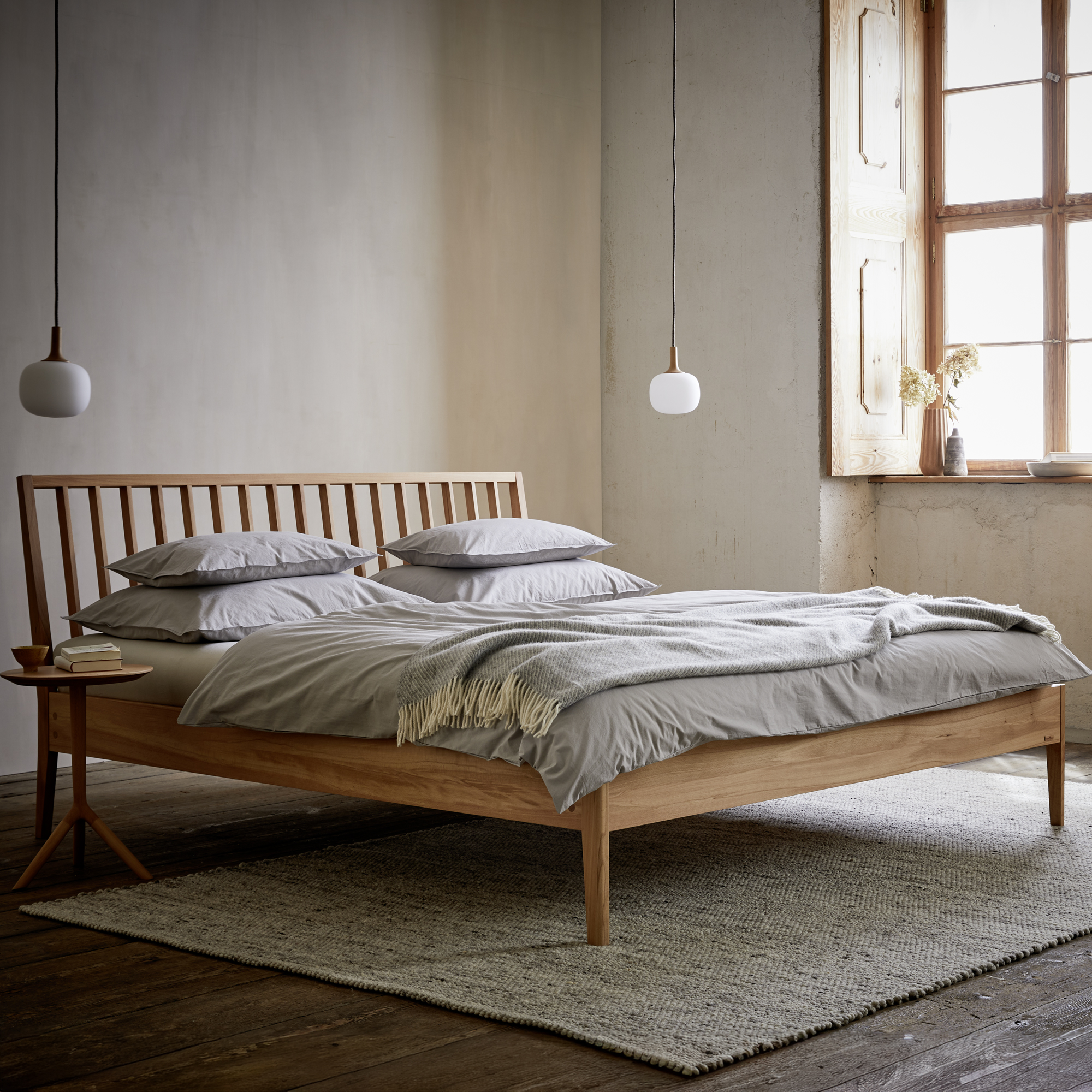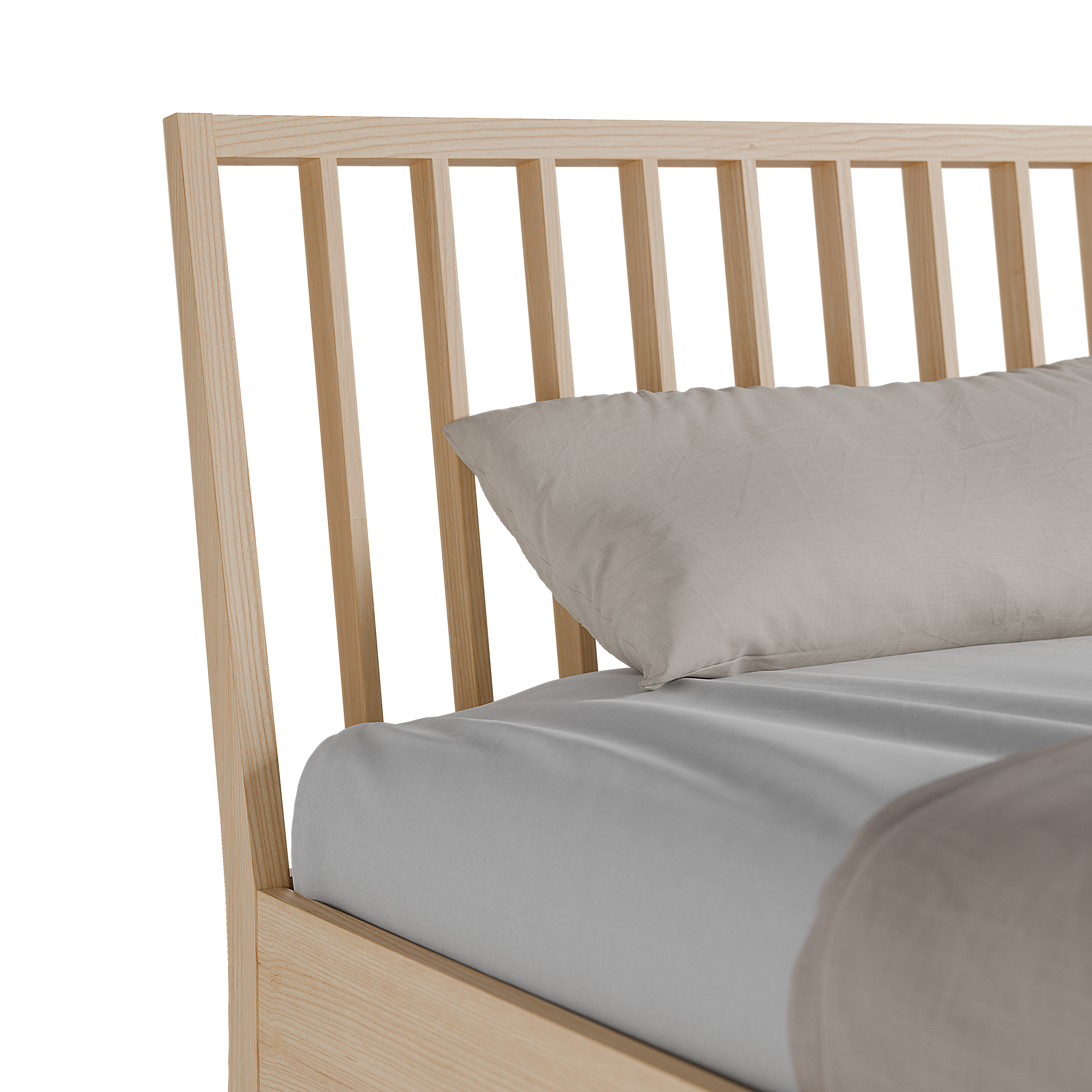Almeno ist das beliebteste Bett von Grüne Erde. Auch, weil es unser vielfältigstes ist. Sie können es in mehreren Holzarten und Modellvarianten wählen, wie hier mit einem feingliedrigen vertikalen Sprossenbetthaupt. Es verleiht dem Bett emporstrebende Anmut und ätherische Leichtigkeit.