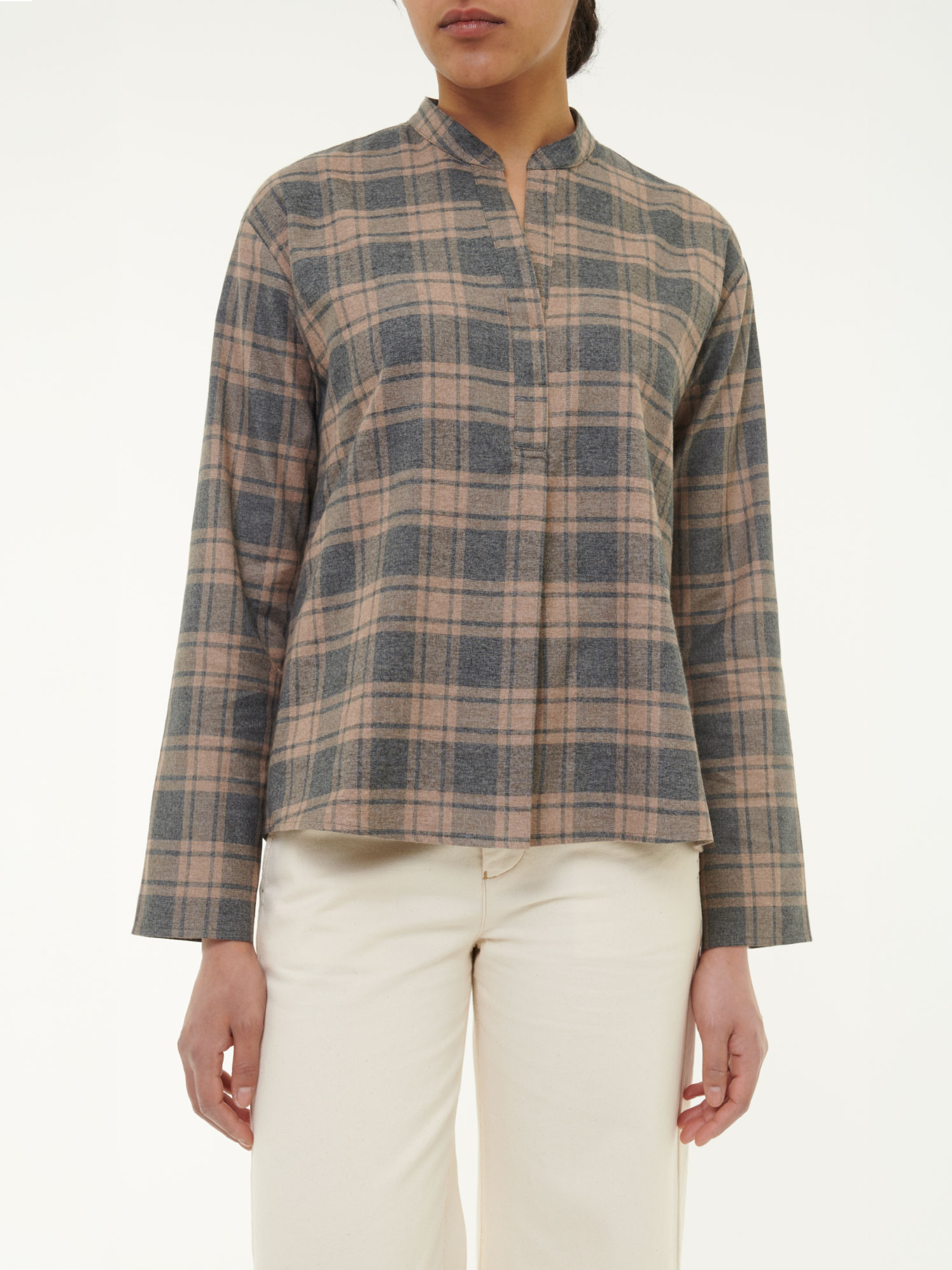 Bluse aus Bio-Baumwolle (karo anthrazit/nougat, 36)