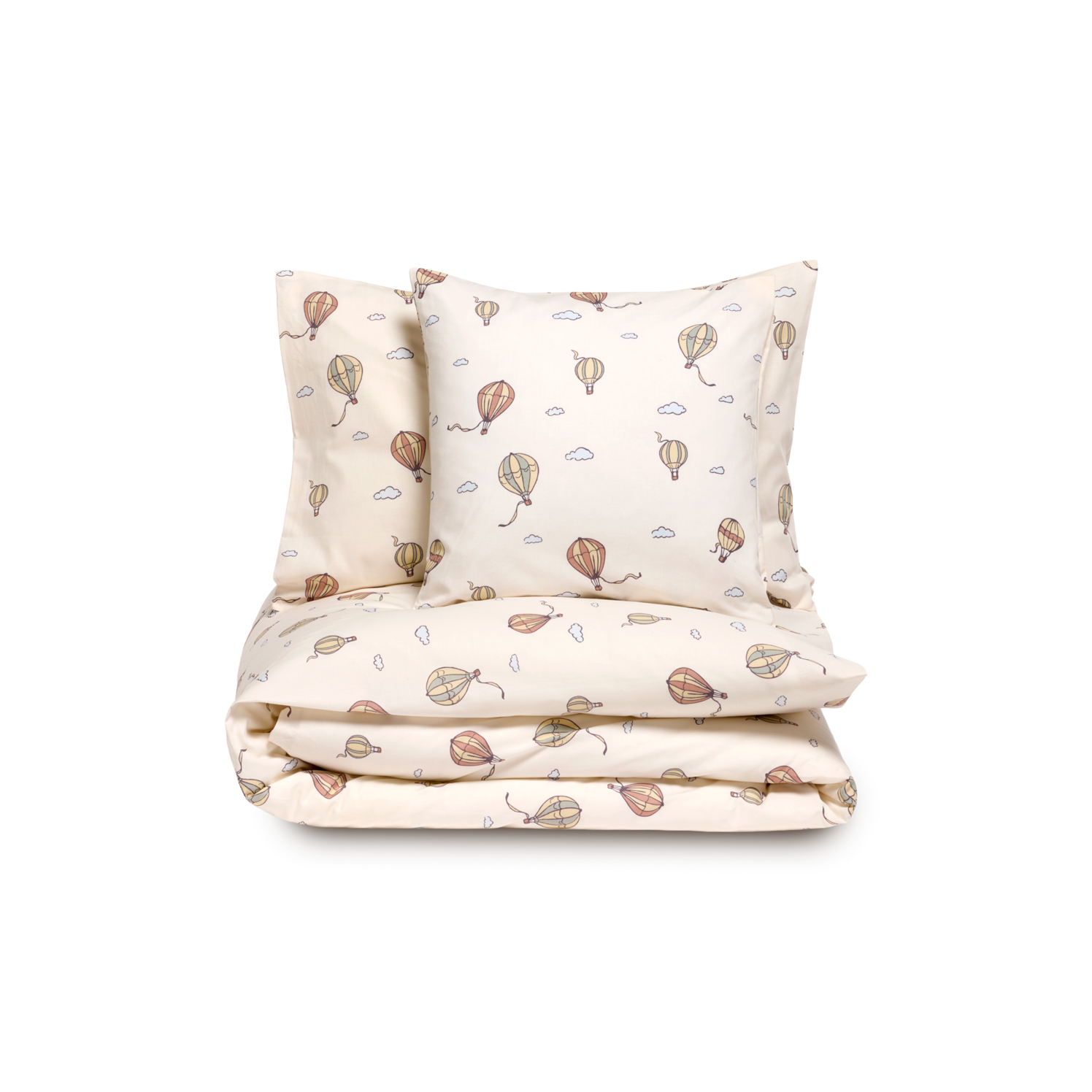 Die Bettwäsche Ballon bringt in sanften Pastelltönen und mit liebevoller Dessinierung eine fröhliche, geborgene Stimmung ins Kinderzimmer. Gefertigt aus feinem Renforcé-Gewebe aus reiner Bio-Baumwolle überzeugt sie durch ihre glatte, angenehm weiche Oberfläche und natürliche Atmungsaktivität – ideal für empfindliche Kinderhaut.