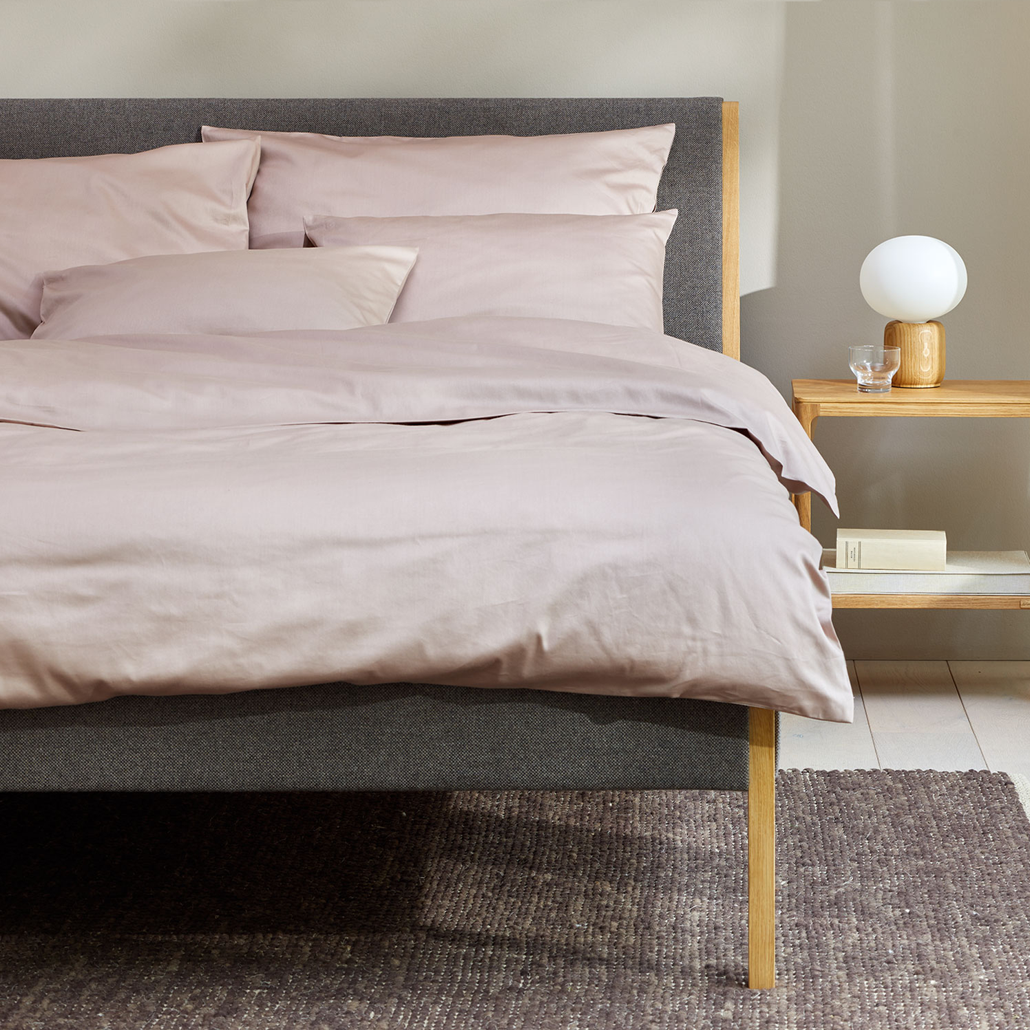 Auch die Farbe "seerose" dieser weiteren Grüne-Erde-Bettwäsche fügt sich harmonisch ein, passt wunderbar zu Walnussholz, aber auch allen anderen Hölzern. Schafft eine wunderbare Atmosphäre!