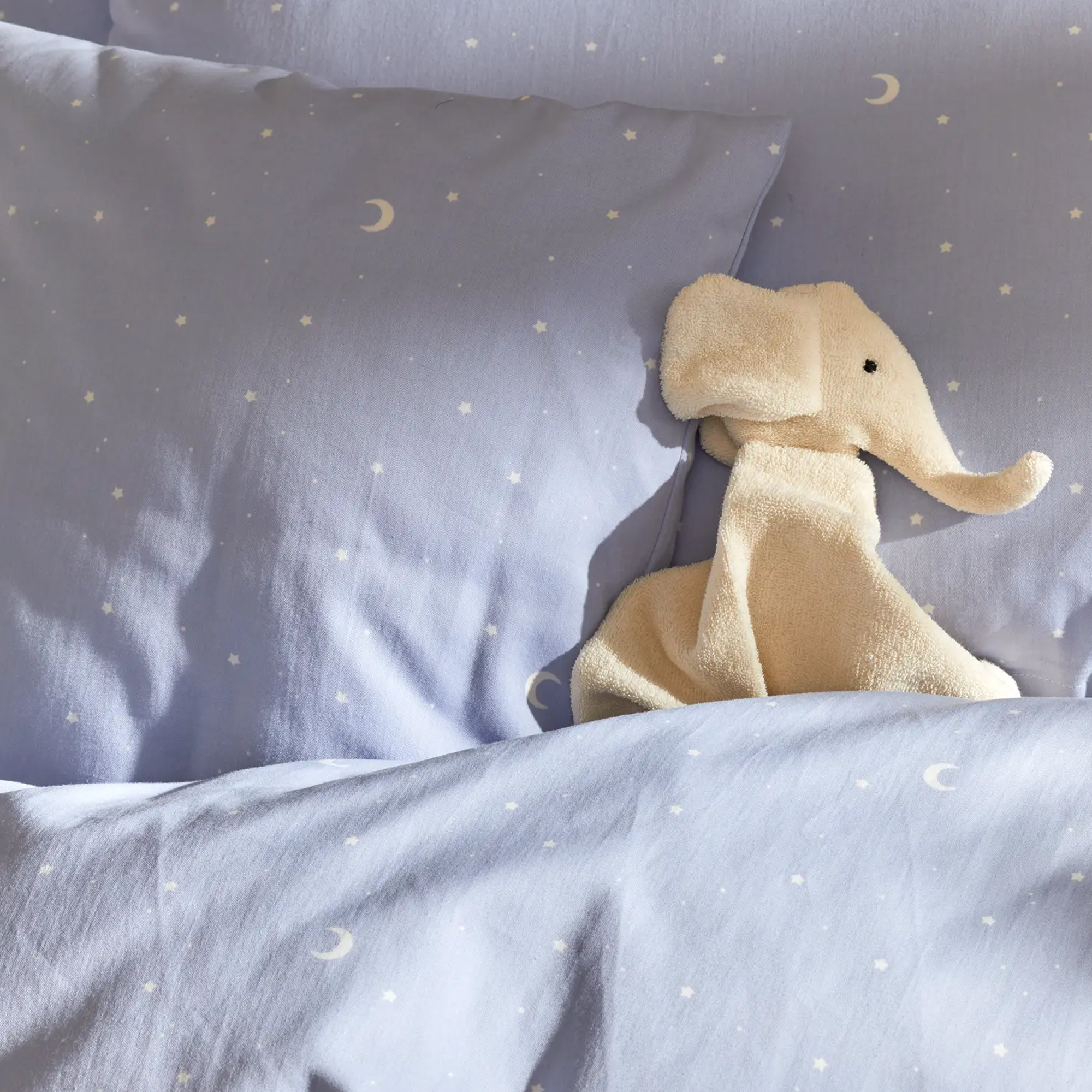 Baumwoll-Satin Bettwäsche empfinde ich als besonders weich und angenehm -so soll es natürlich auch für mein Enkelkind sein, und so fühlt sich die Kinderbettwäsche Luna an. Der Farbton ist ein zartes Blau, und die vielen Sternchen und Monde wirken beruhigend - ab und zu ein lustiges Vollmondgesicht unter all den "Mondsicheln" fände ich witzig für die Kleinen.