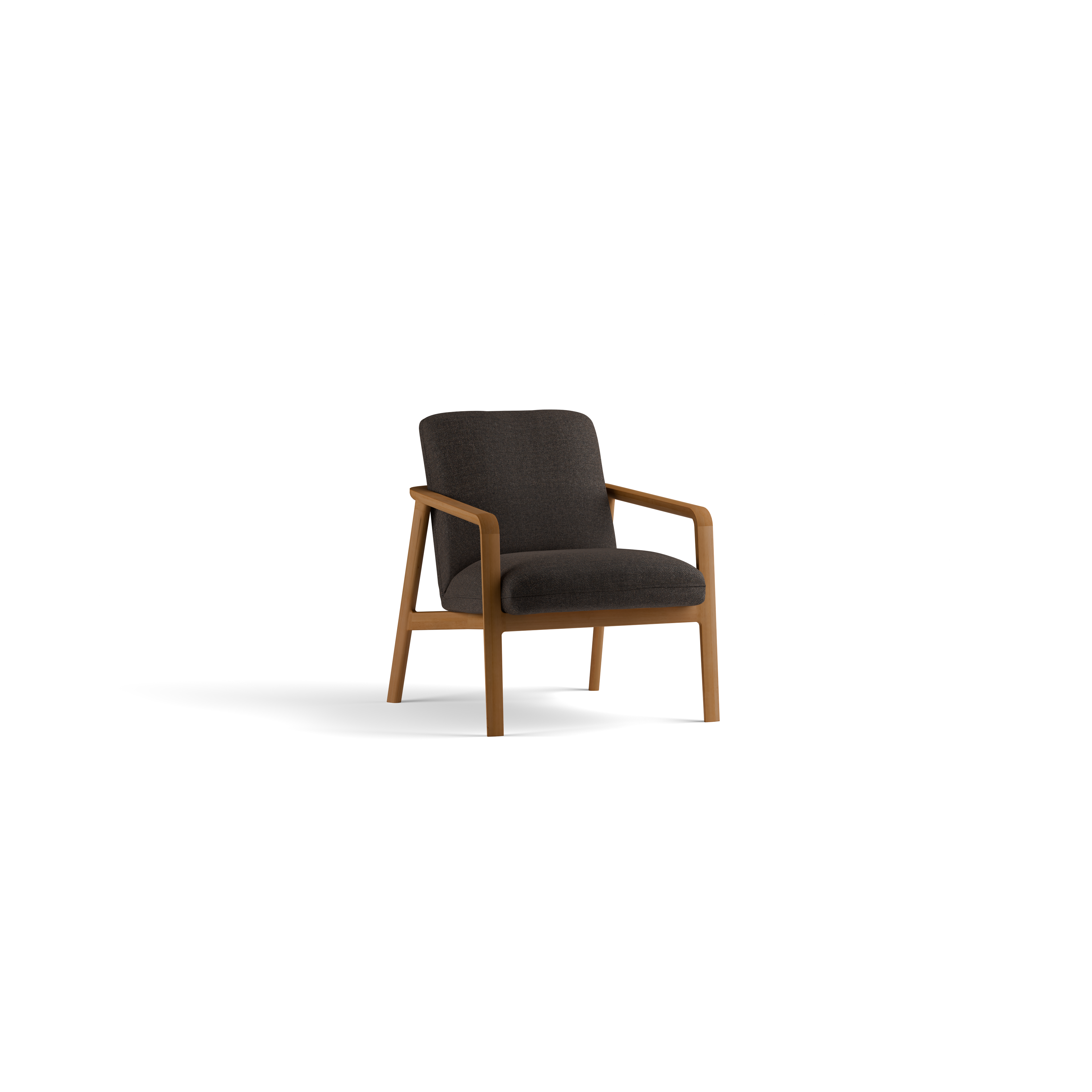 Das elegante, leichte, beinahe zarte Sichtholzgestell nimmt die Polsterung auf, und läuft in einem kühnen Schwung um die Rückenlehne herum. Die handschmeichlerisch gerundeten Holme sind aus massivem Buchen- bzw. Eichenholz aufwendig gefräst.