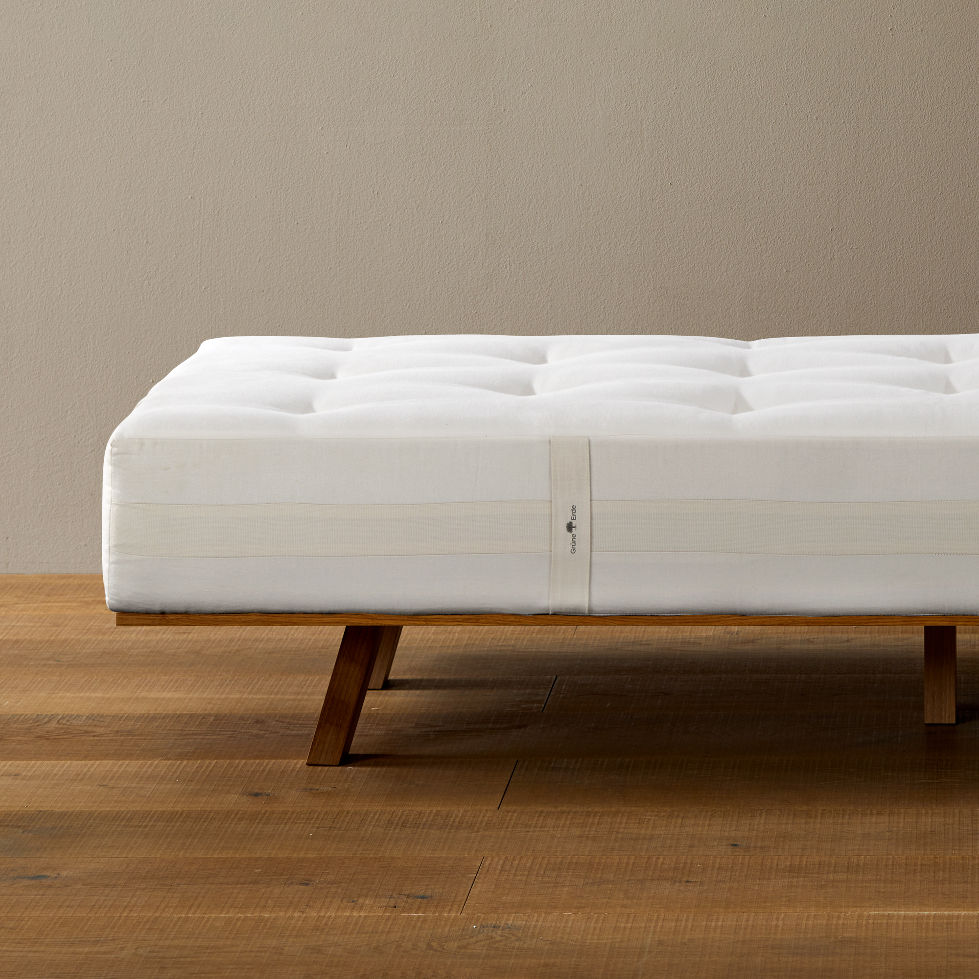 Der fein gewebte, hochwertige Bezug aus Baumwoll-Satin wird in unserer Matratzenwerkstätte im oberösterreichischem Almtal mit einer sorgfältig angefertigten Handnaht verschlossen.