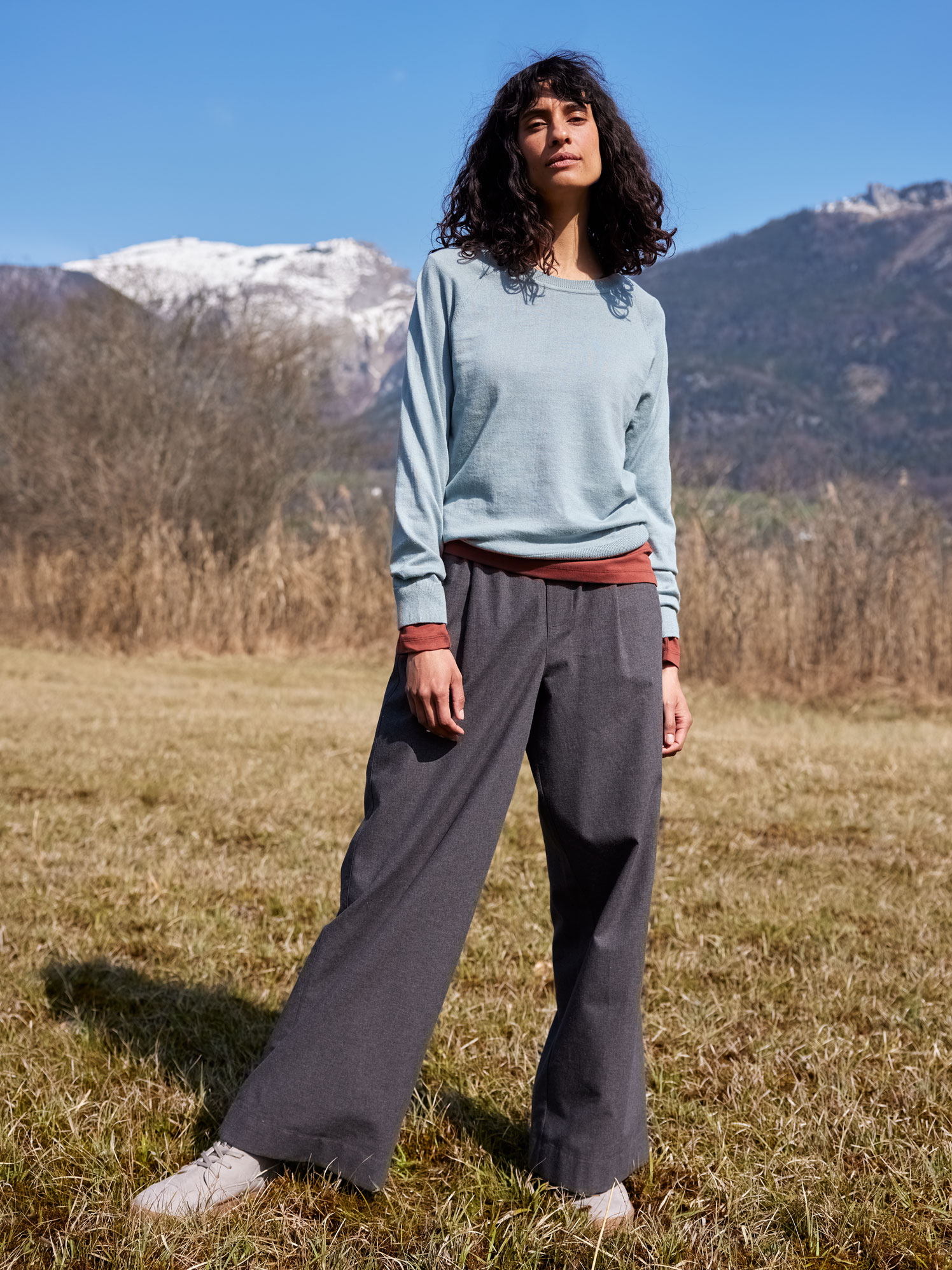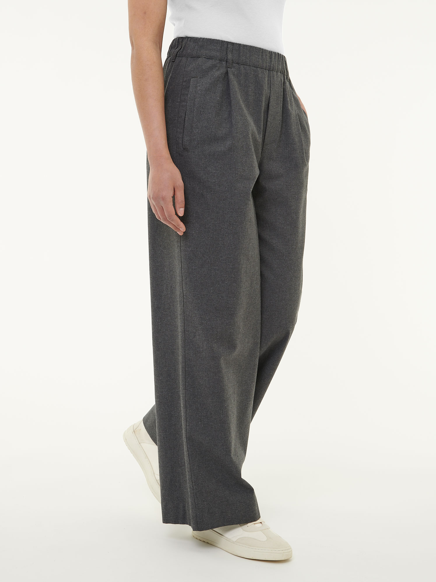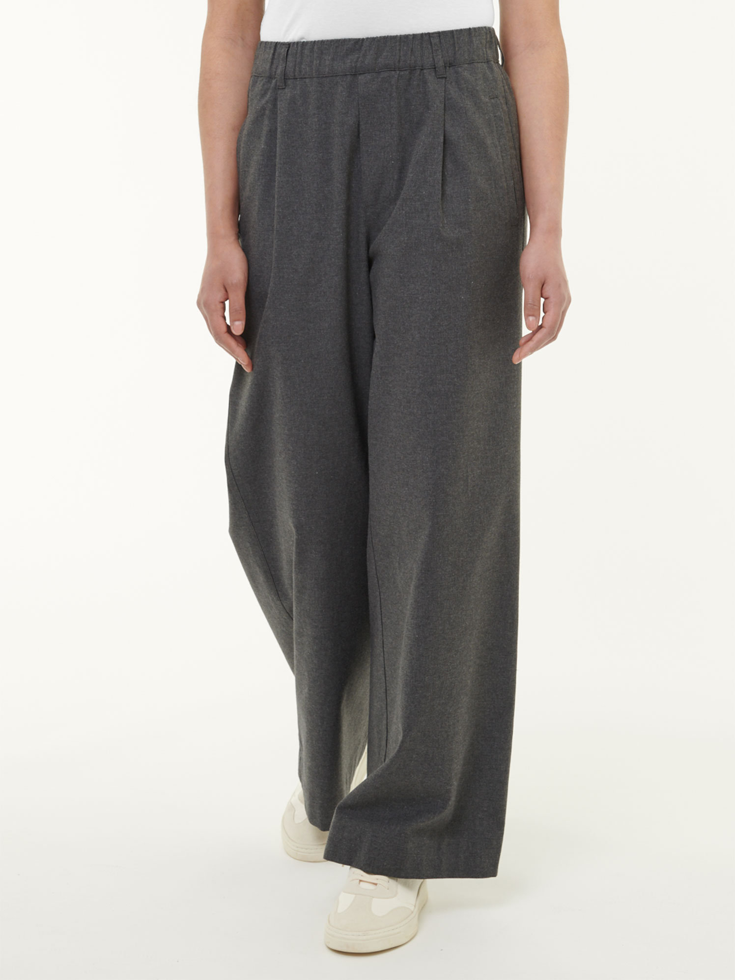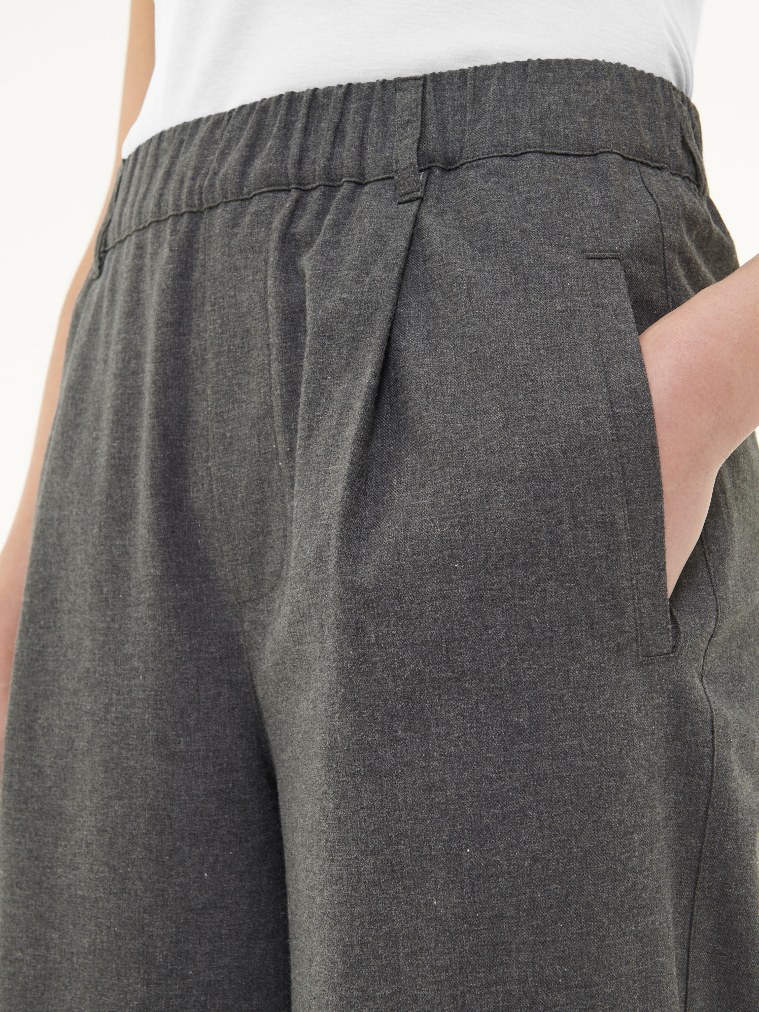 Die Hose aus reiner Baumwolle kbA überzeugt mit ihrer besonders weichen Edelflanell-Qualität und einem zurückhaltenden Farbton. Der komfortable Gummizug im Bund, Gürtelschlaufen und Leistentaschen machen sie alltagstauglich und bequem. Das weite Bein und ein angedeuteter Schlitz vorn verleihen der Hose eine moderne Silhouette mit femininer Leichtigkeit. Ein unkompliziertes Lieblingsstück für jeden Tag – pur, natürlich, hochwertig.