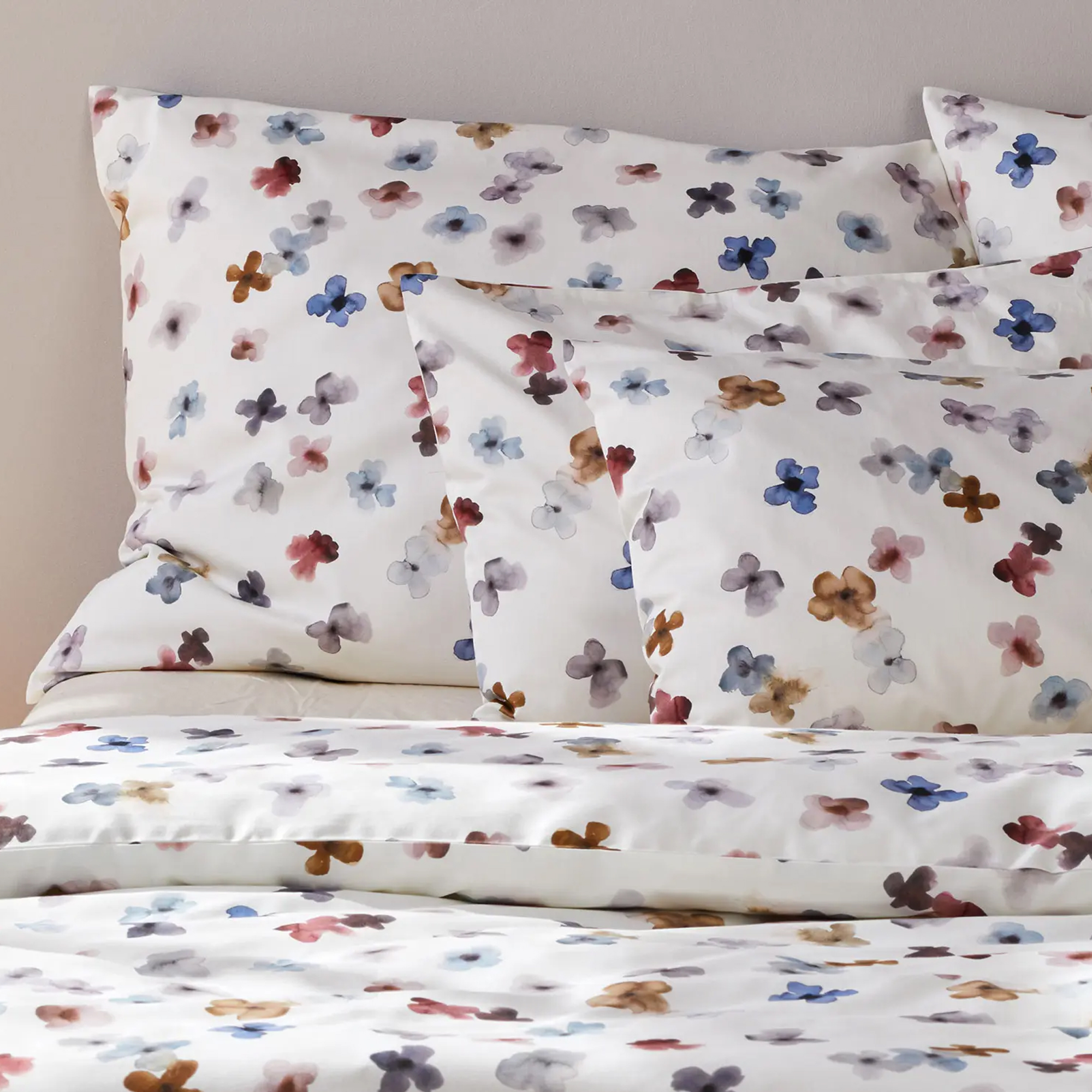 Die Bettwäsche aus hochwertigem Baumwoll-Satin vereint stilvolle Ästhetik mit geborgenem Schlafkomfort. Die zart glänzende Qualität betont den mehrfarbigen Aquarelldruck auf naturfarbenem Grund und überzeugt zudem mit kühlenden und atmungsaktiven Eigenschaften. Ein sichtbarer Knopfverschluss mit ungefärbten Steinnussknöpfen rundet das Design harmonisch ab. Elodie ist perfekt kombinierbar mit der Bettwäsche Carla.