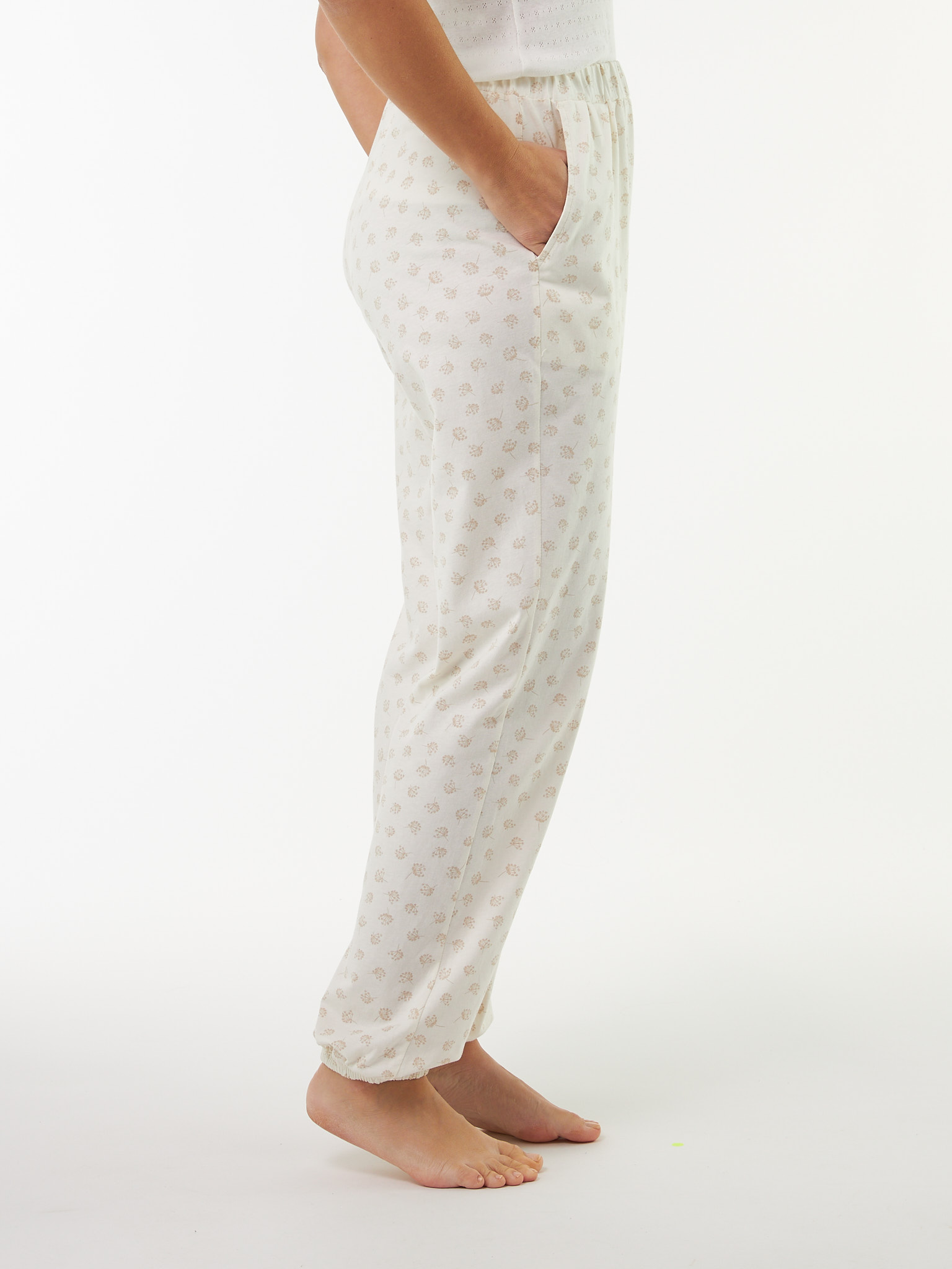 Ein natürliches Basic für die Nacht: Die locker geschnittene Hose mit schmalem Beim aus weichem Baumwoll-Jersey überzeugt mit einer angenehm-ruhigen Optik. Das hochwertige Naturmaterial und der unkomplizierte Schnitt – mit Gummizug im Bund, zwei seitliche Eingriffstaschen und Bündchen am Beinsaum – bieten einen leichten Tragekomfort.