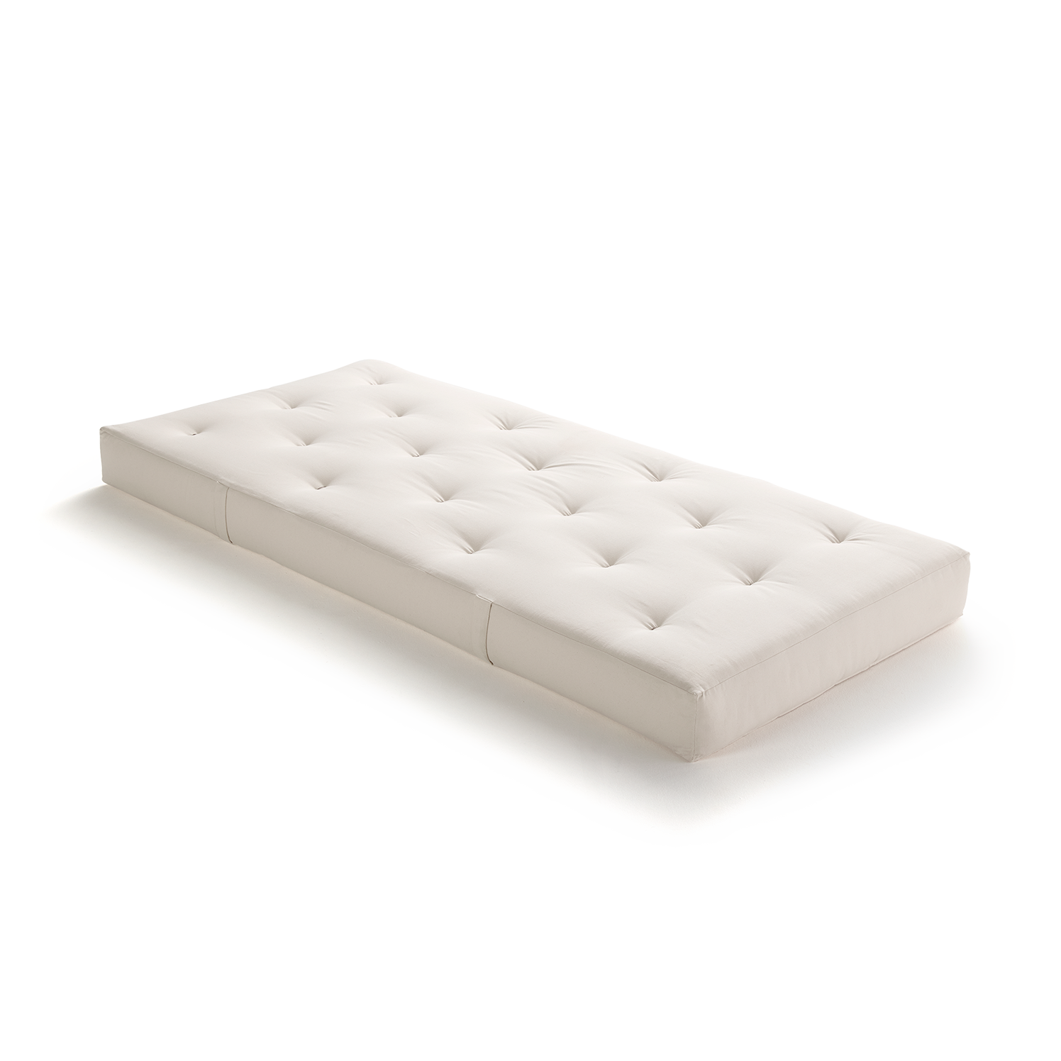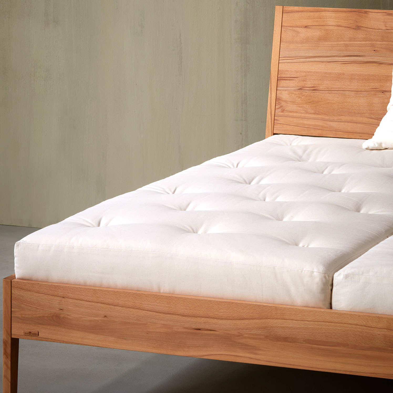 Die Matratze ist je nach Wärmebedarf bzw. Jahreszeit wendbar: Winterseite mit Schurwoll-, Sommerseite mit Baumwollauflage.