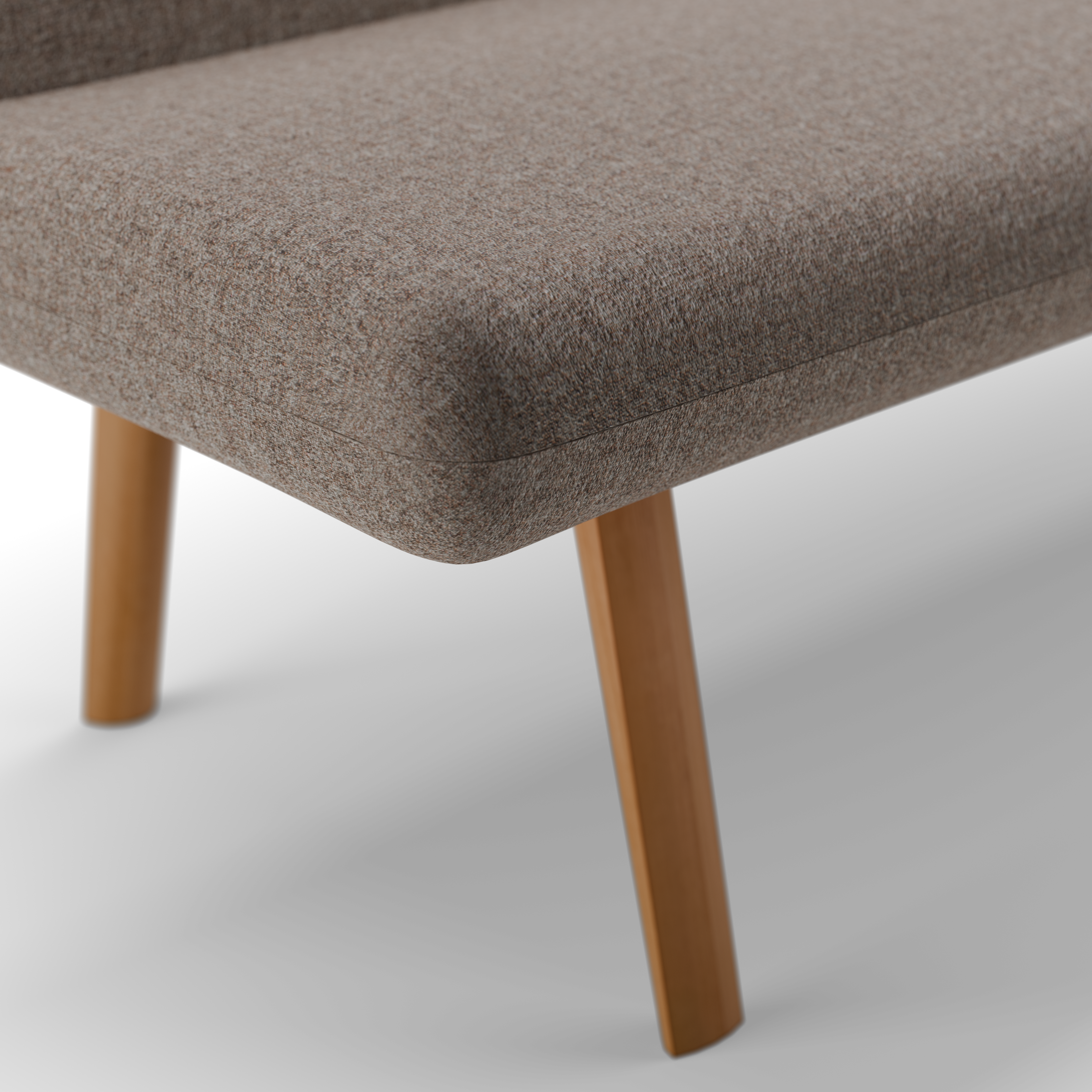 Getragen wird der Polsterteil von einem Fußgestell mit gerundeten Ecken und Kanten. Beide Teile sind von wieder lösbaren Holzsteckverbindungen fest zusammengehalten. Die nach innen versetzte Position der Bankbeine erleichtern die Bewegungsfreiheit der am Tisch Sitzenden. Schönes Designdetail: Die nach oben verlängerten Hinterbeine der Bank überlappen die Rückenlehne und stützen diese gleichsam. So macht Ketil auch freistehend gute Figur.
