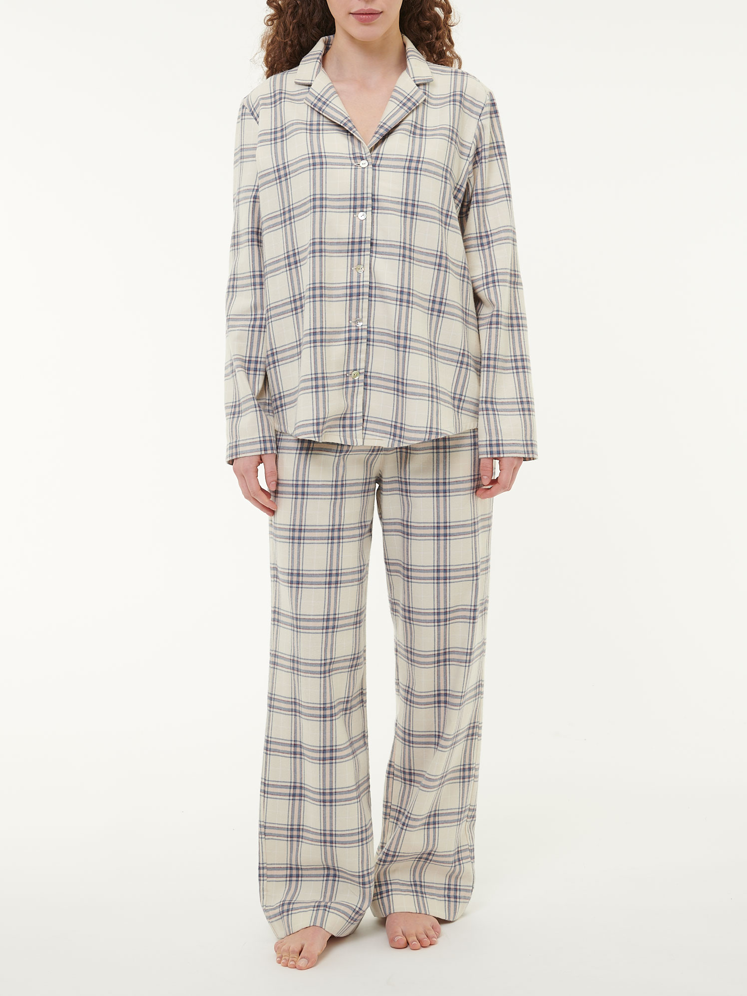 Pyjamahemd aus Bio-Baumwolle (karo perlmutt/blau, XL)