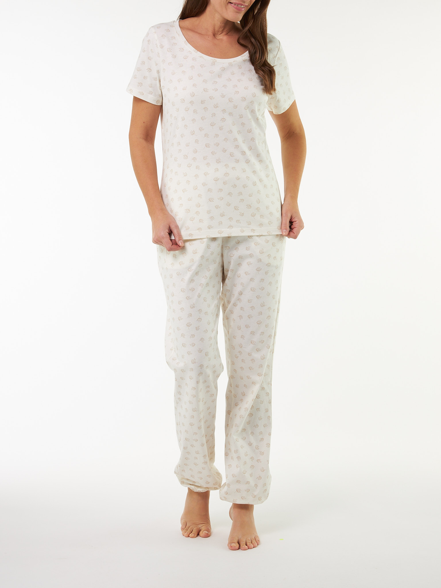Ein natürliches Basic für die Nacht: Das figurumspielende Schlafshirt aus weichem Baumwoll-Jersey überzeugt mit einer feinen Ringel-Dessinierung. Das hochwertige Naturmaterial und der unkomplizierte Schnitt – mit Rundhalsausschnitt und kurzen Ärmeln – bieten einen leichten Tragekomfort.