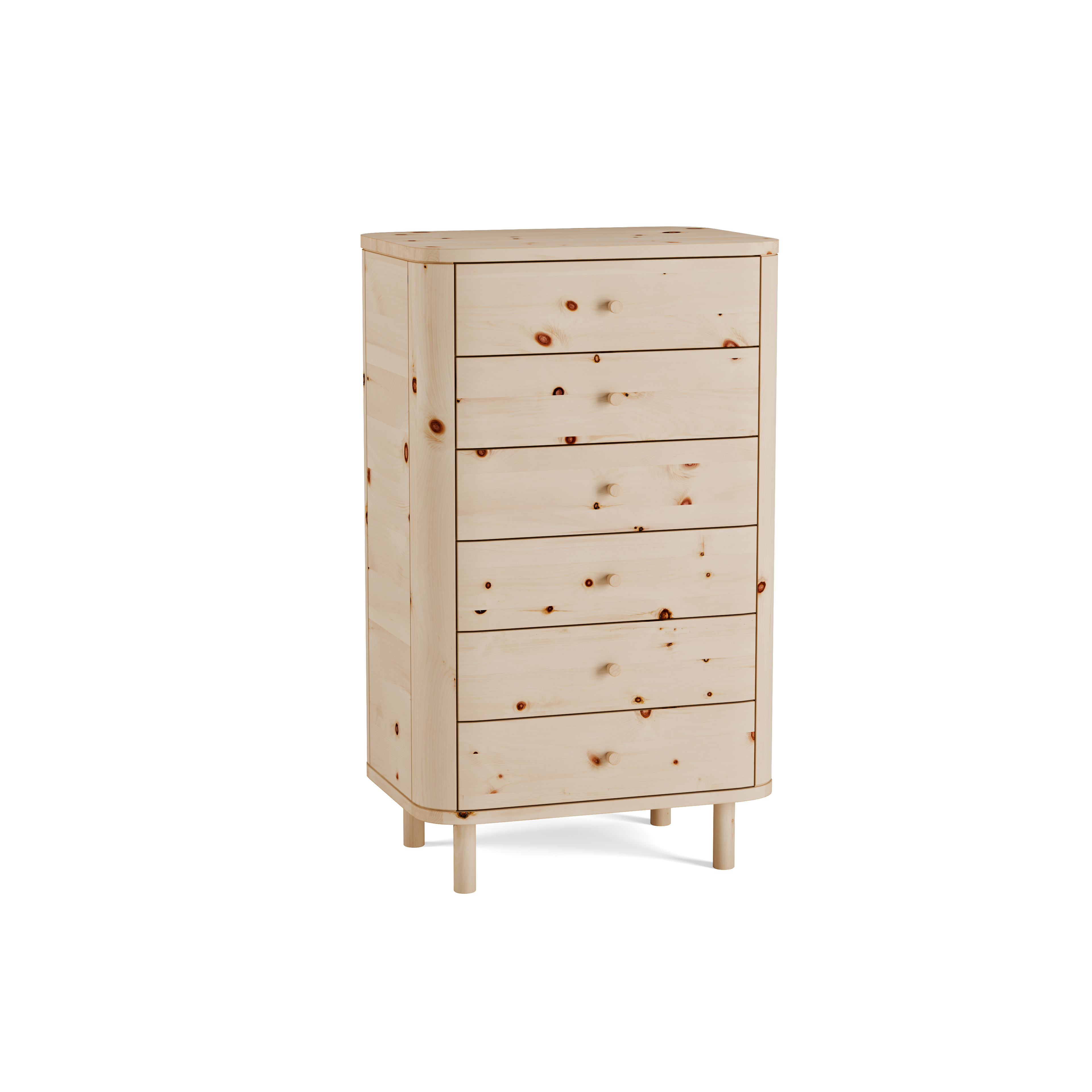 Mit seinen 6 geräumigen Schubladen bietet der Schrank viel Stauraum, beansprucht mit 60 cm Breite und 42 cm Tiefe aber nur eine kleine Aufstellfläche.