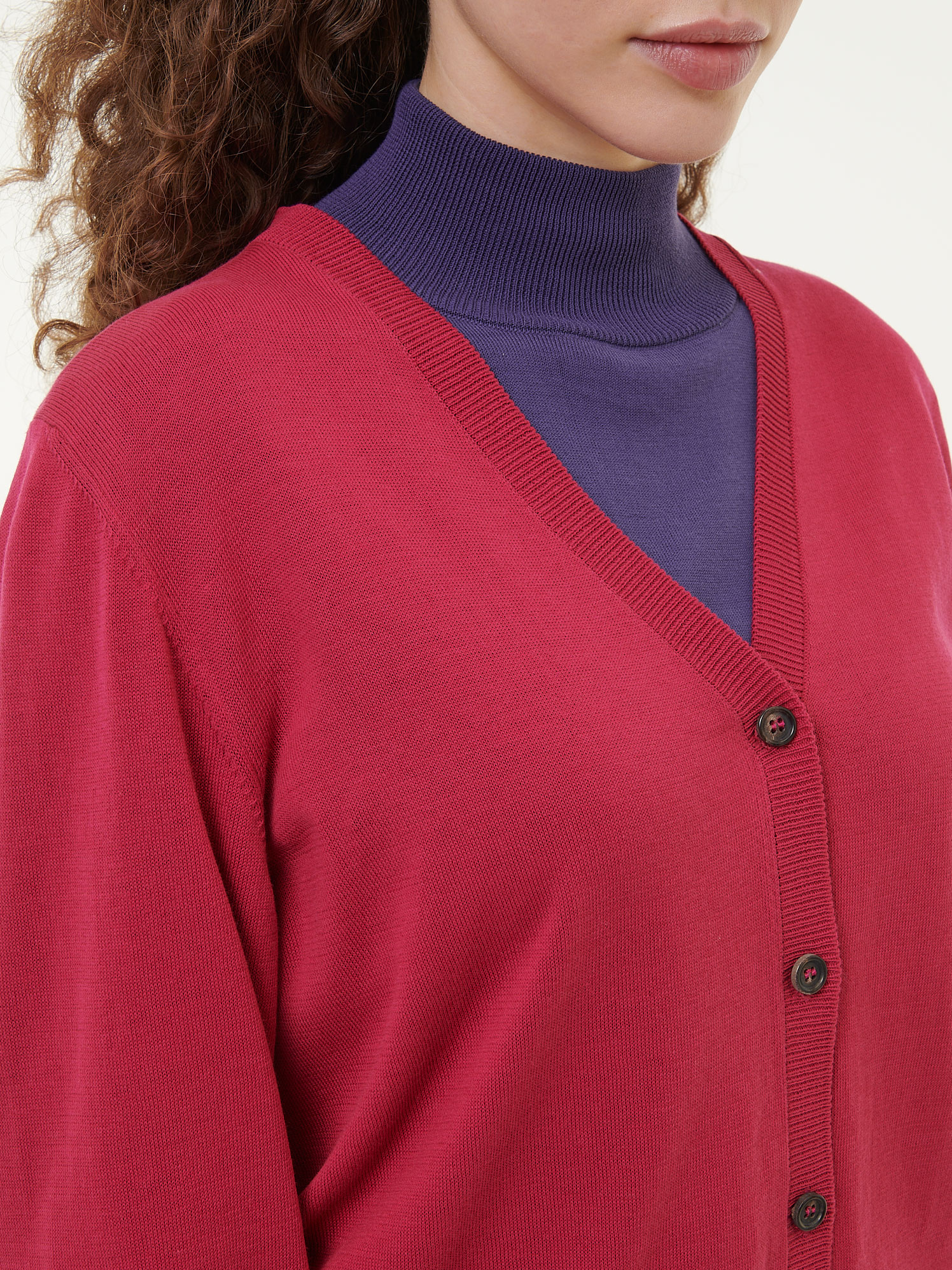 Strickjacke mit durchgehender Knopfleiste: Ein zeitloser Klassiker aus reiner Baumwolle kbA. Die weiche Feinstrick-Qualität liegt angenehm auf der Haut und macht das Modell zum perfekten Begleiter für jeden Tag –  solo getragen oder im Layering-Look. Breite Rippbündchen an den Abschlüssen sorgen für einen lässigen Abschluss.