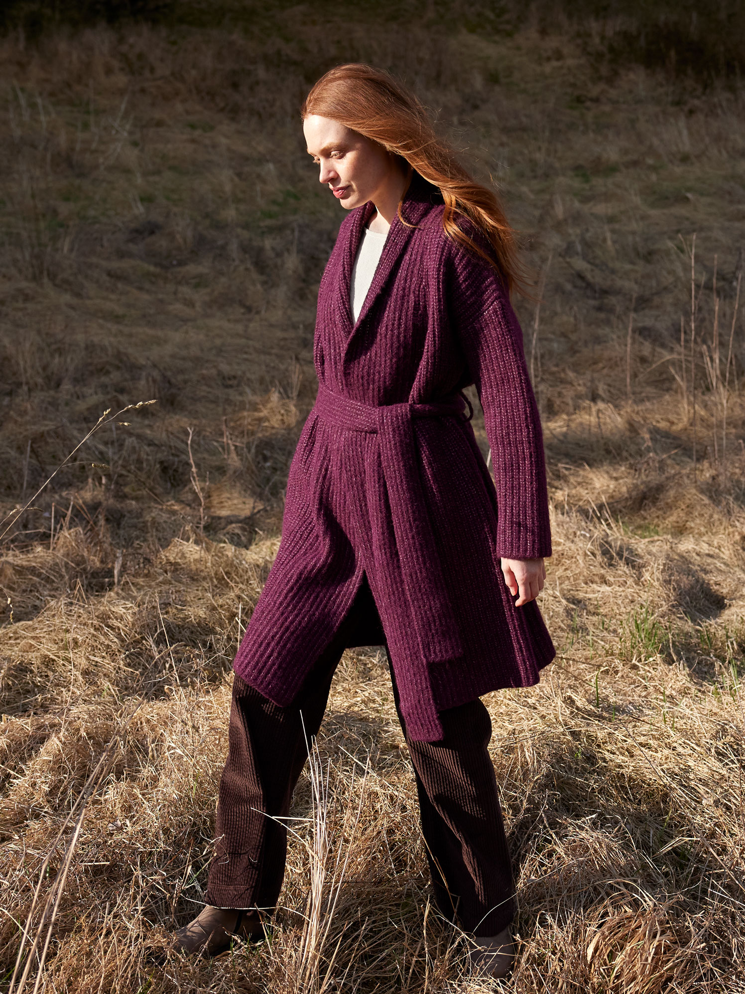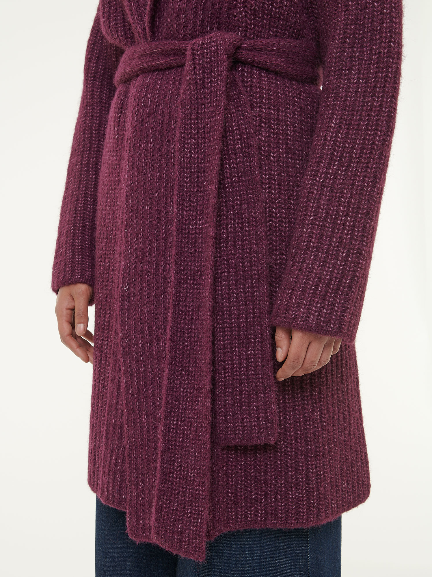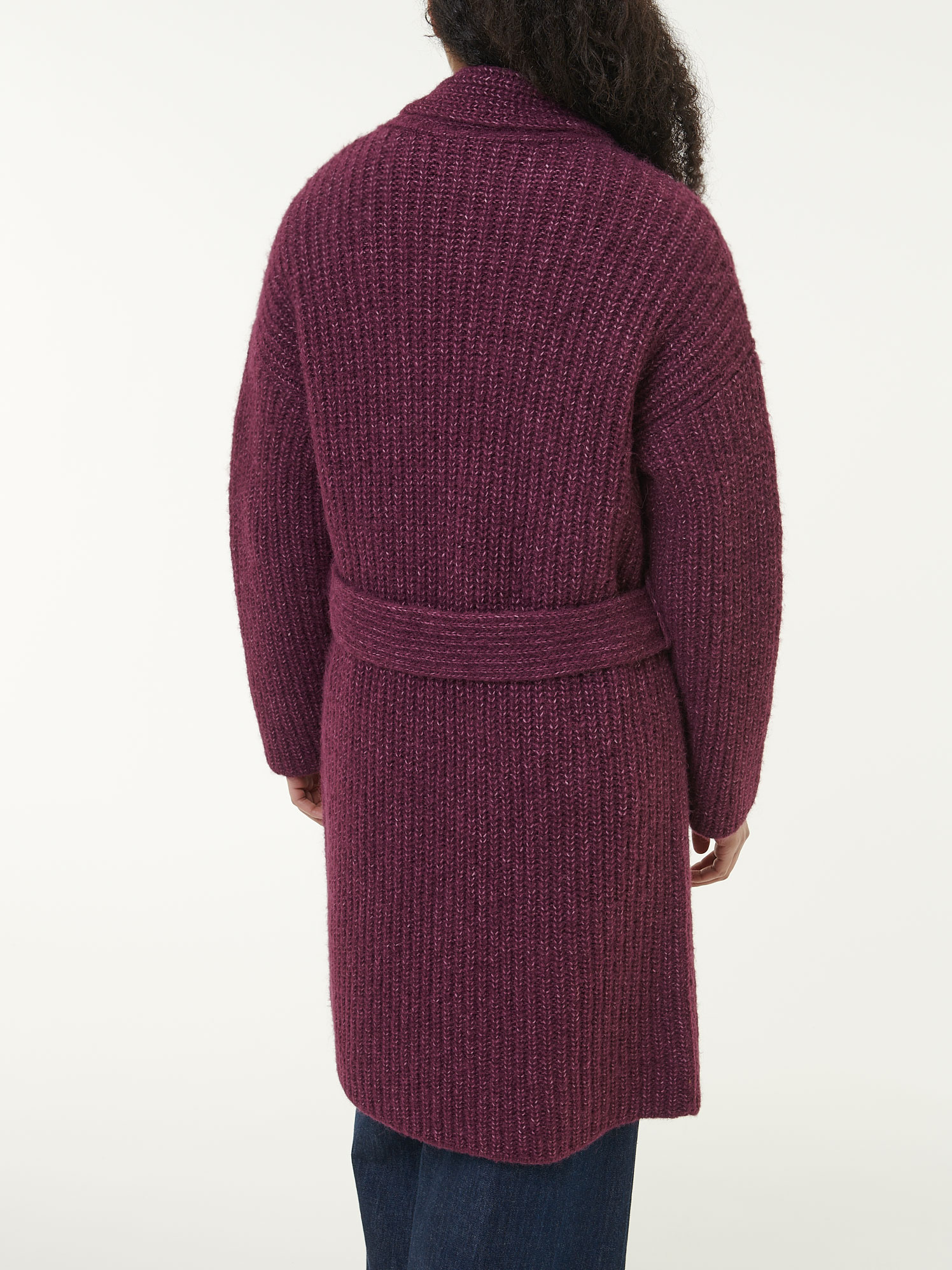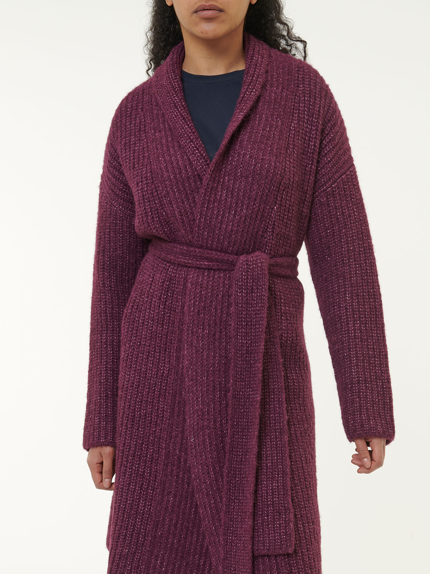 Strickmantel aus Alpakawolle und Bio-Baumwolle (aubergine melange, L)