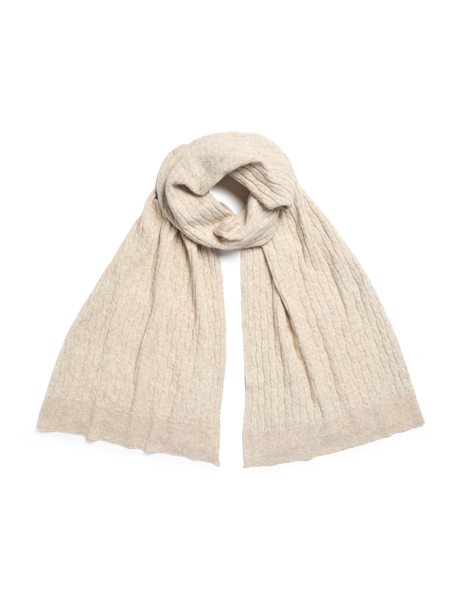 Basic-Must-Have aus hautschmeichelndem Materialmix: bequemer Feinstrick-Schal aus weicher Baumwolle kbA und wärmender Wolle kbT. Der weiche Melange-Farbton in Kombination mit dem zurückhaltenden Zopfmuster macht das Modell zu einem unverzichtbaren Bestandteil Ihrer Garderobe – zeitlos und feminin. Mit Ripp-Abschluss.