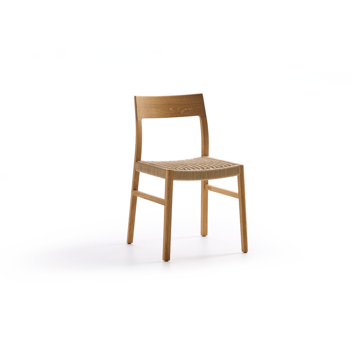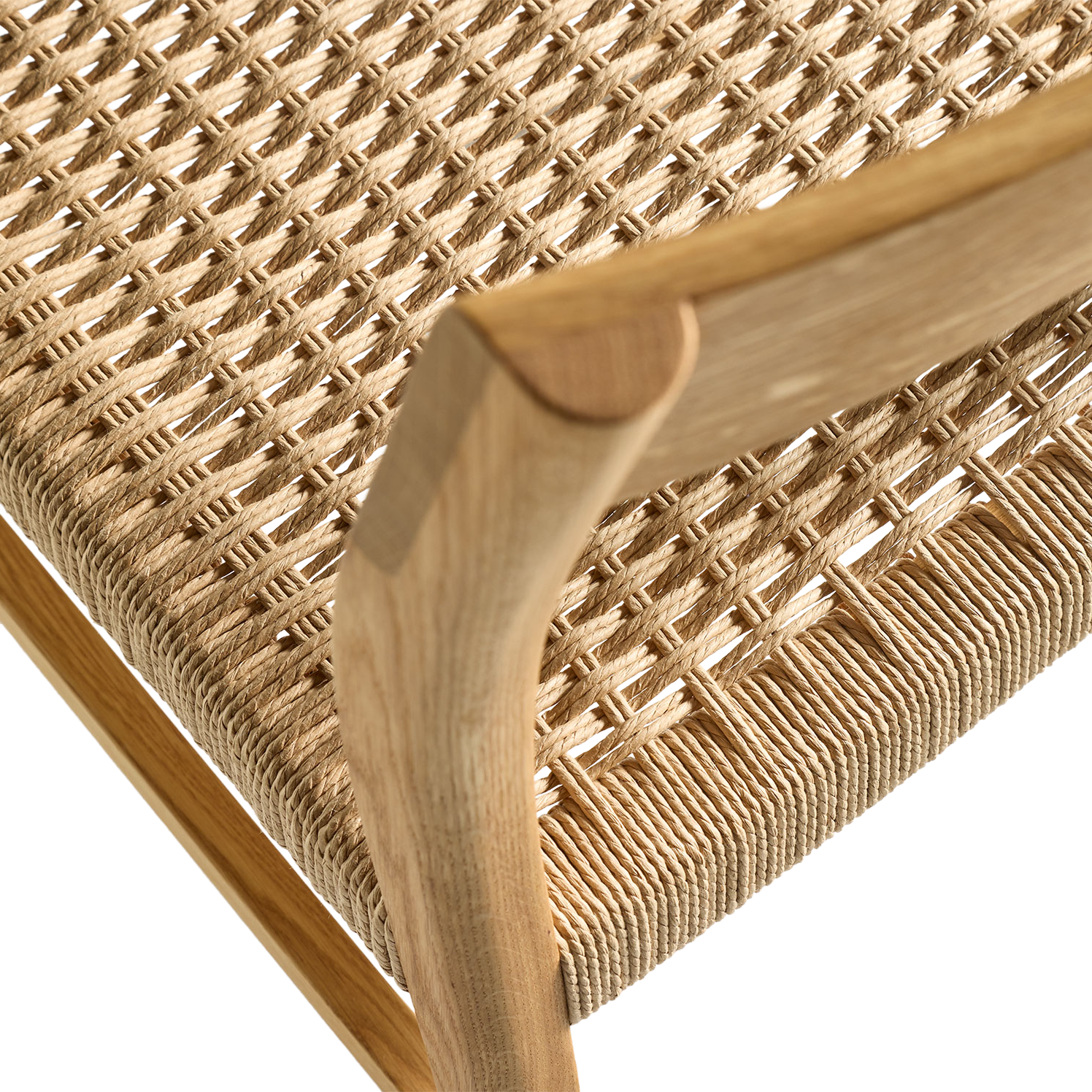 Für diese Modellvariante von Karim verarbeiten wir "Danish Cord", eine in den 1940er-Jahren in Dänemark speziell für geflochtene Sitzflächen entwickelte, in sich gedrehte, extrem reißfeste Papierschnur. Etwa 120 m davon werden über den Sitzrahmen und an dessen Innenseiten montierte Holzdübel verflochten: etwa eineinhalb bis zwei Stunden sorgfältige, konzentrierte Handarbeit!