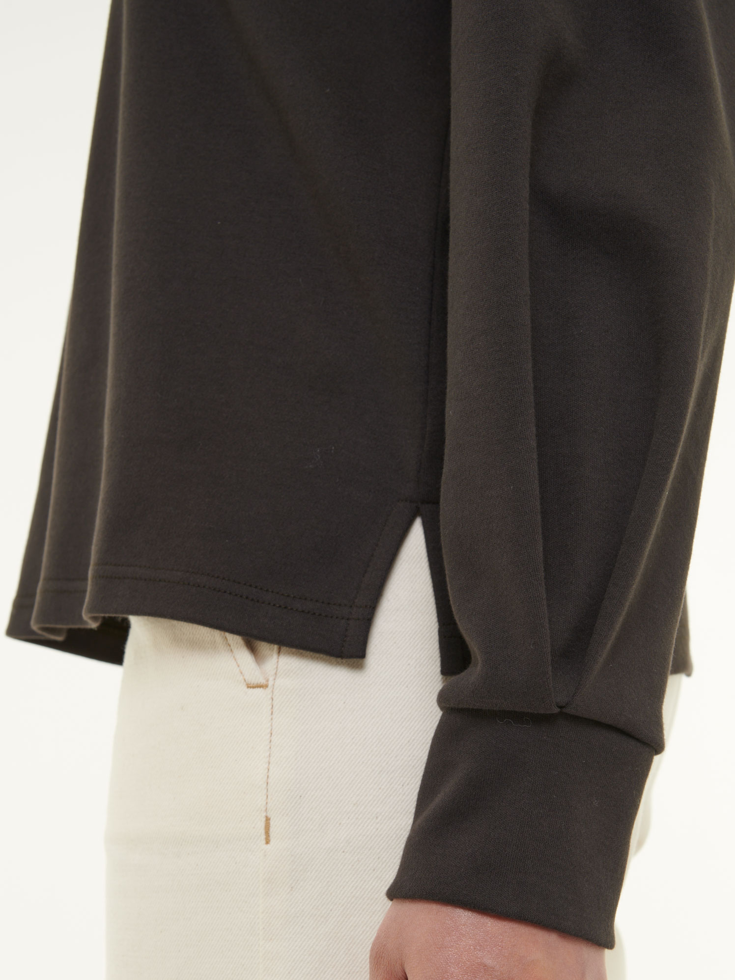 Das Sweatshirt ist super angenehm auf der Haut . Auch die Farbe ist sehr schön und der Schnitt besonders anziehend.