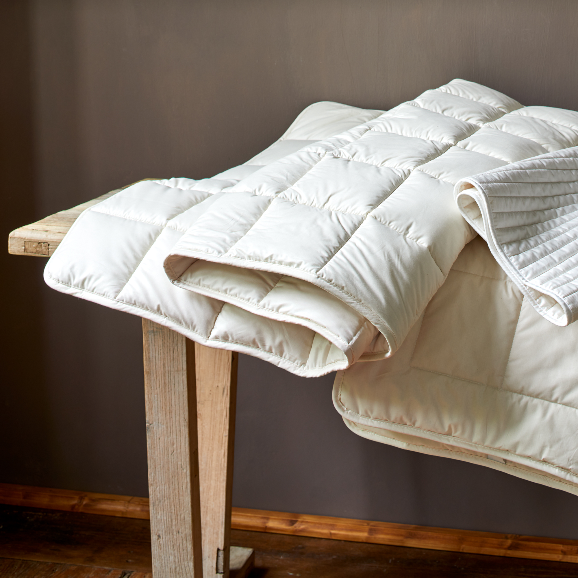 Die Füllung (700 g/m2) ist mit einem besonders dichten, strapazierfähigen, in Vorarlberg gewebten Inlett aus hochwertiger, langstapeliger Baumwolle kassettenartig versteppt.