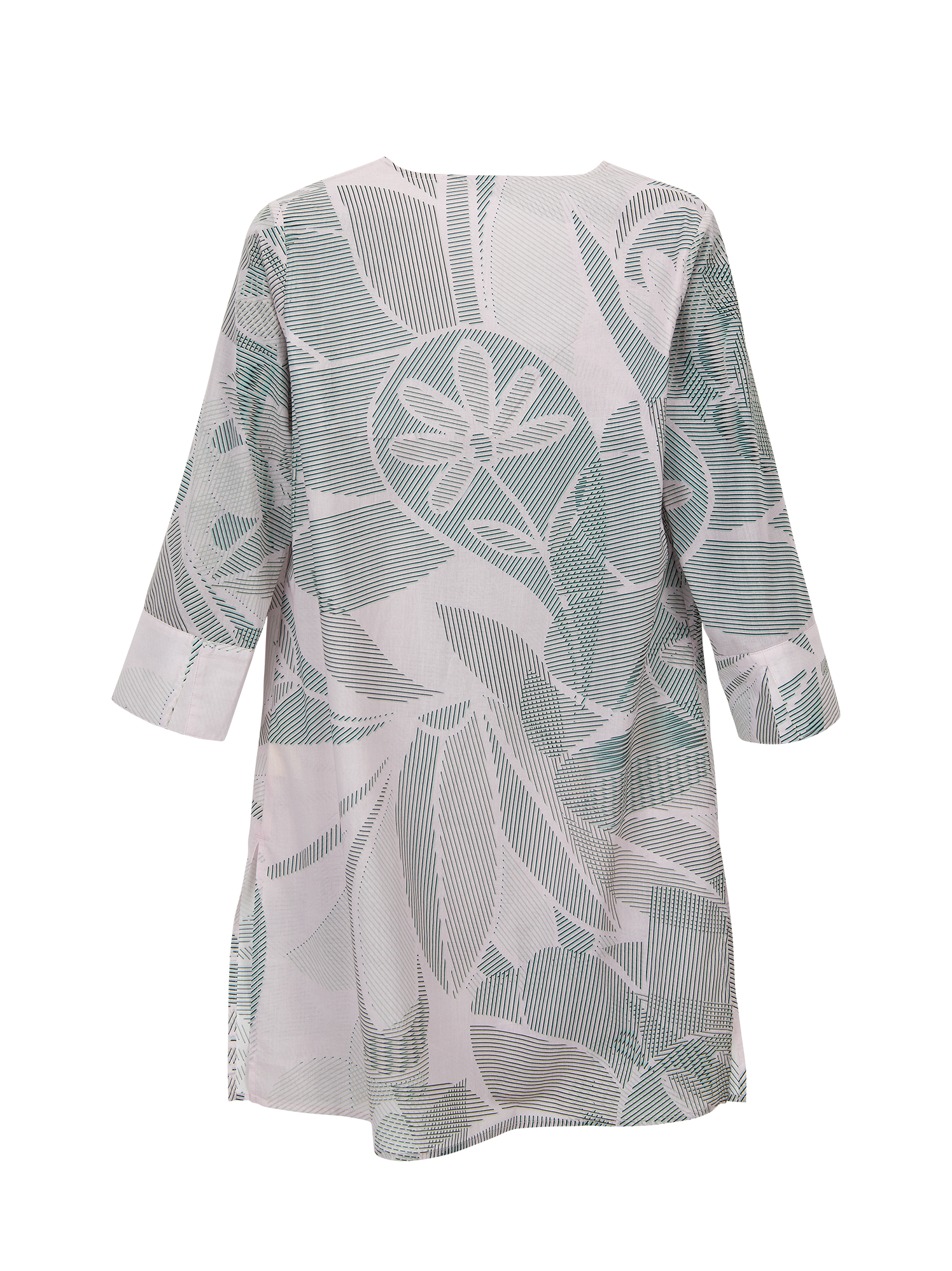 Elegante Tunika mit stilisiertem Blumendruck in schmeichelnder Pastell-Farbgebung. Die sommerliche Batist-Qualität aus reiner Bio-Baumwolle trägt sich sehr angenehm. Mit V-Ausschnitt, Brustabnähern, krempelbaren 3/4-Ärmeln und hohen Seitennahtschlitzen. Dieses Modell kann mit und ohne Gürtel kombiniert werden. Länge in Größe 36 ca. 86/90? cm.