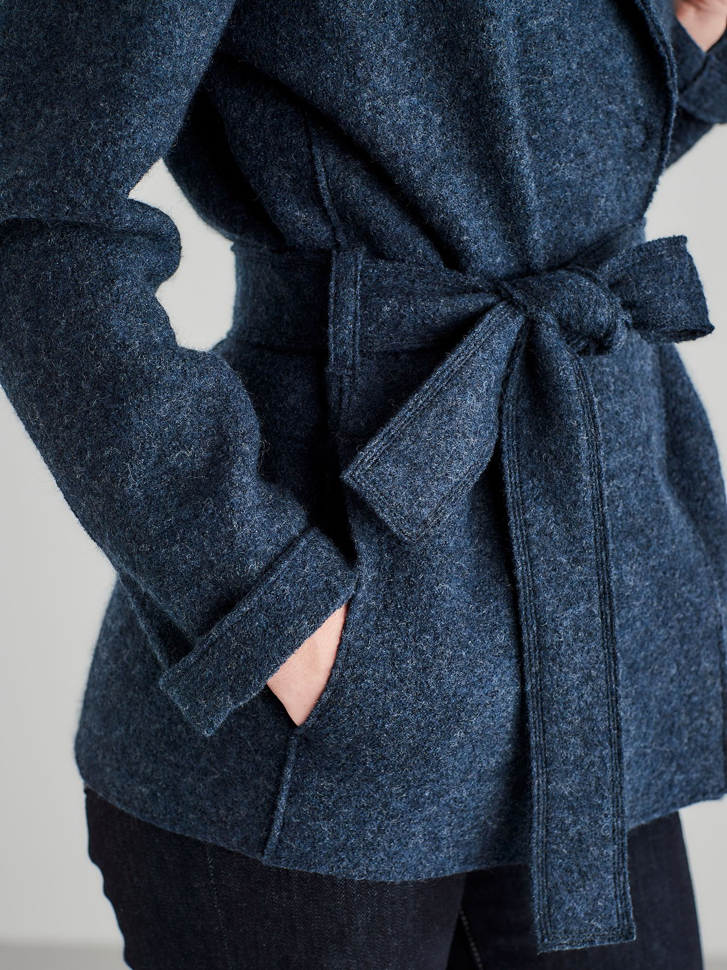 Diese zeitlos-schöne Outdoor-Jacke aus Wolle aus kontrolliert biologischer Tierhaltung ist die ideale Abrundung für beinahe jedes Outfit! Die Walk-Jacke in Blau-Melange überzeugt mit ihrem schlichten Design und der – dank hochwertiger Wolle – wärmenden Funktion. Die Details: mit offenkantigen Nahtverarbeitungen, vordere Kante mit drei verdeckten, überzogenen Druckknöpfen, einem losen Bindegürtel, zwei seitlichen Eingriffstaschen und einem Reverskragen.Schnitt: leger. In Größe 36 ca. 75 cm lang.Verarbeitung: 100 % Wolle. Wolle kbT aus Argentinien. Gewalkt in Österreich. Gefertigt in Litauen. -