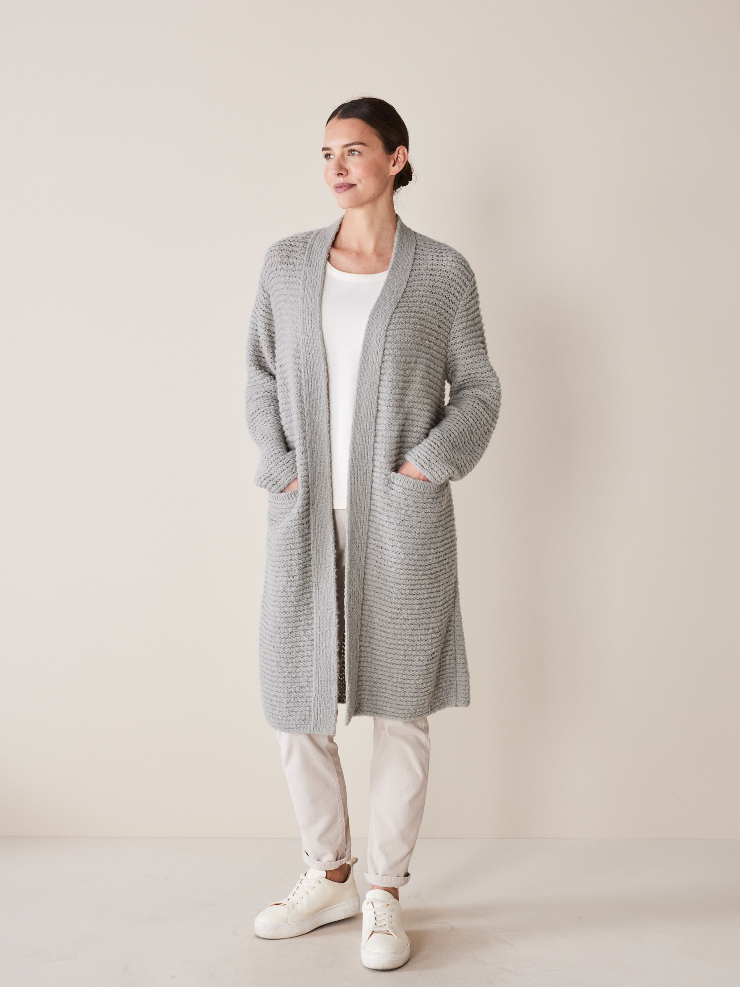 Elegant, authentisch und pur: Dieser zeitlose Strickmantel ist nicht nur einfach zu kombinieren, sondern auch schwer wegzudenken. Das besonders flauschige Kleidungsstück aus reiner Alpakawolle sorgt für ein anschmiegsames Gefühl, wärmt ausgezeichnet und rundet jedes Outfit stilvoll ab.Das Modell hat zwei aufgesetzte Taschen, zwei Seitenschlitze am Saum sowie Bündchen an Saum- und Ärmelabschluss.Schnitt: oversize. In Größe S (36/38) ca. 98 cm lang.Unsere Models sind zwischen 175 cm und 177 cm groß und tragen Kleidergröße 36.Verarbeitung: 100 % Alpakawolle. Alpakawolle aus Peru. Gestrickt in Peru. Gefertigt in Peru. -