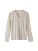 Schlafshirt Langarm, 100 % Bio Baumwolle, 80 sand-weiss ringel, XS, GOTS