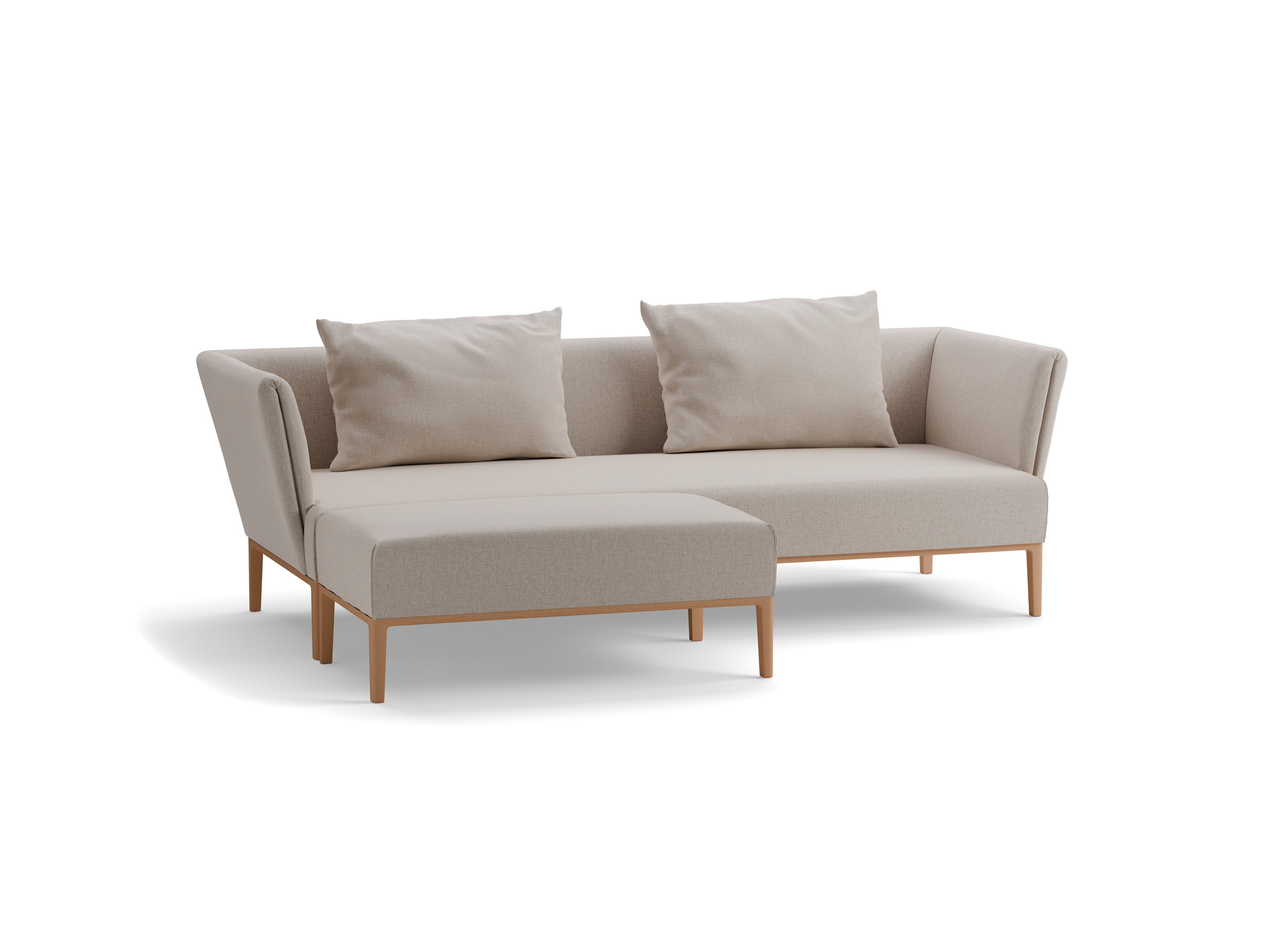 3er Sofa Lorea, B 236 x T 95 cm, mit Hocker Lorea, B 109 x T 60 cm, inkl. 2 Kissen (60x85 cm), mit Bezug Wollstoff Kaland Sesam (115), Buche