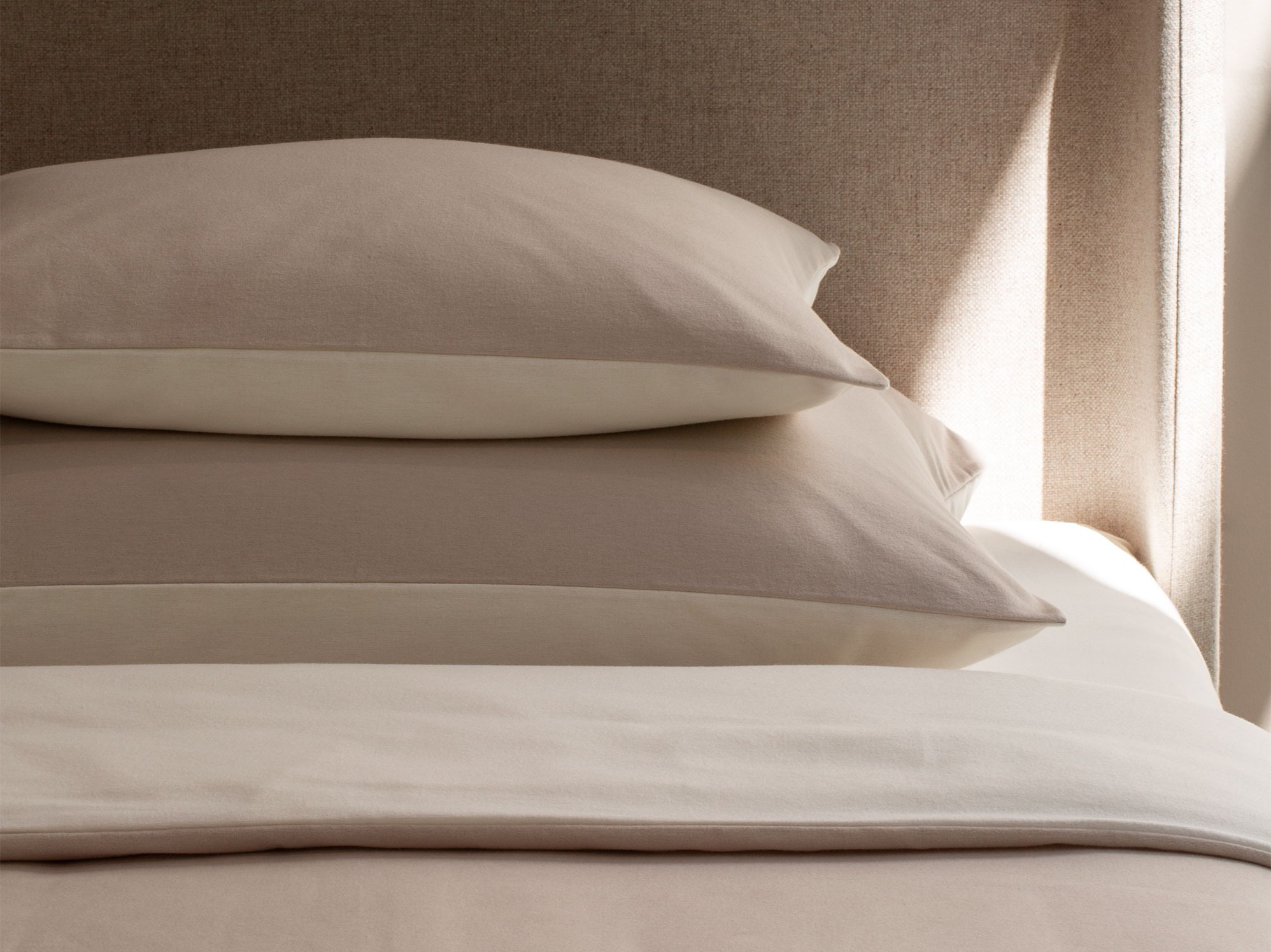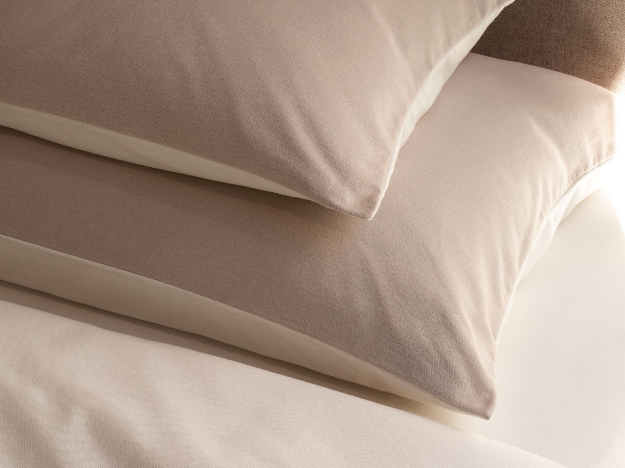Die Bettwäsche Ilva sorgt mit der besonders zarten Flanell-Qualität für ein angenehm-weiches Gefühl auf der Haut. Sie entsteht aus hochwertiger Bio-Baumwolle und wird sorgfältig in Österreich nach dem GOTS gefertigt. Die Kissen- und Deckenbezüge bestechen mit feinem Flor dank der gerauhten Oberfläche. Mit sichtbarem Knopfverschluss, sehr pflegeleicht und langlebig. Gewicht: 170 g/m2.