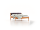 Dynamischer Schwung & hohe StabilitätDas stabile Betthaupt neigt sich sanft etwas nach hinten und bildet gemeinsam mit dem Bettfuß einen dynamischen Schwung. Es ist mit einer abnehmbaren, weich gepolsterten Housse ausgestattet. Diese fügt dem festen Material Holz eine weiche Komponente hinzu und lädt zum bequemen, knarzfreien Anlehnen ein, etwa beim Lesen oder beim abendlichen Gedankenaustausch mit dem Partner bzw. der Partnerin.Material & FertigungDas hochwertige, dauerhafte Massivholz für Almeno stammt aus mitteleuropäischen, nachhaltig bewirtschafteten Wäldern. Die Teile des Bettes werden von passgenauen, bei Bedarf wieder lösbaren Holzsteckverbindungen fest zusammengehalten. Dank dieser metallfreien Lasche-und-Dübel-Verbindungen lässt sich Almeno ohne Qualitäts- und Funktionsverlust wiederholt zerlegen und wieder zusammenbauen – ganz im Sinne der langen Nutzungsdauer des Bettes.Die Holzoberfläche ist von Hand mit duftendem, natürlichem Pflegeöl (lösemittelfrei) eingelassen. Zirbe bleibt vollständig unbehandelt, damit der charakteristische Duft dieser Holzart gut zur Geltung kommt.Die abnehmbare Betthaupt-Housse ist mit weichem Kokoslatex und Schurwollfilz gepolstert, mit dem NATURTEXTIL BEST-zertifizierten Schurwollstoff Ihrer Wahl bezogen und mit handwerklich sorgfältigen Nähten verarbeitet.Die Housse wird an Holzdübeln an der Innenseite des Bettrahmens befestigt, über das Betthaupt geschlagen und mit dekorativen Knöpfen aus Olivenholz verschlossen.Hinweis: Preis inklusive Aufstellservice, ohne Lattenrost, Matratze und Zubehör. -
