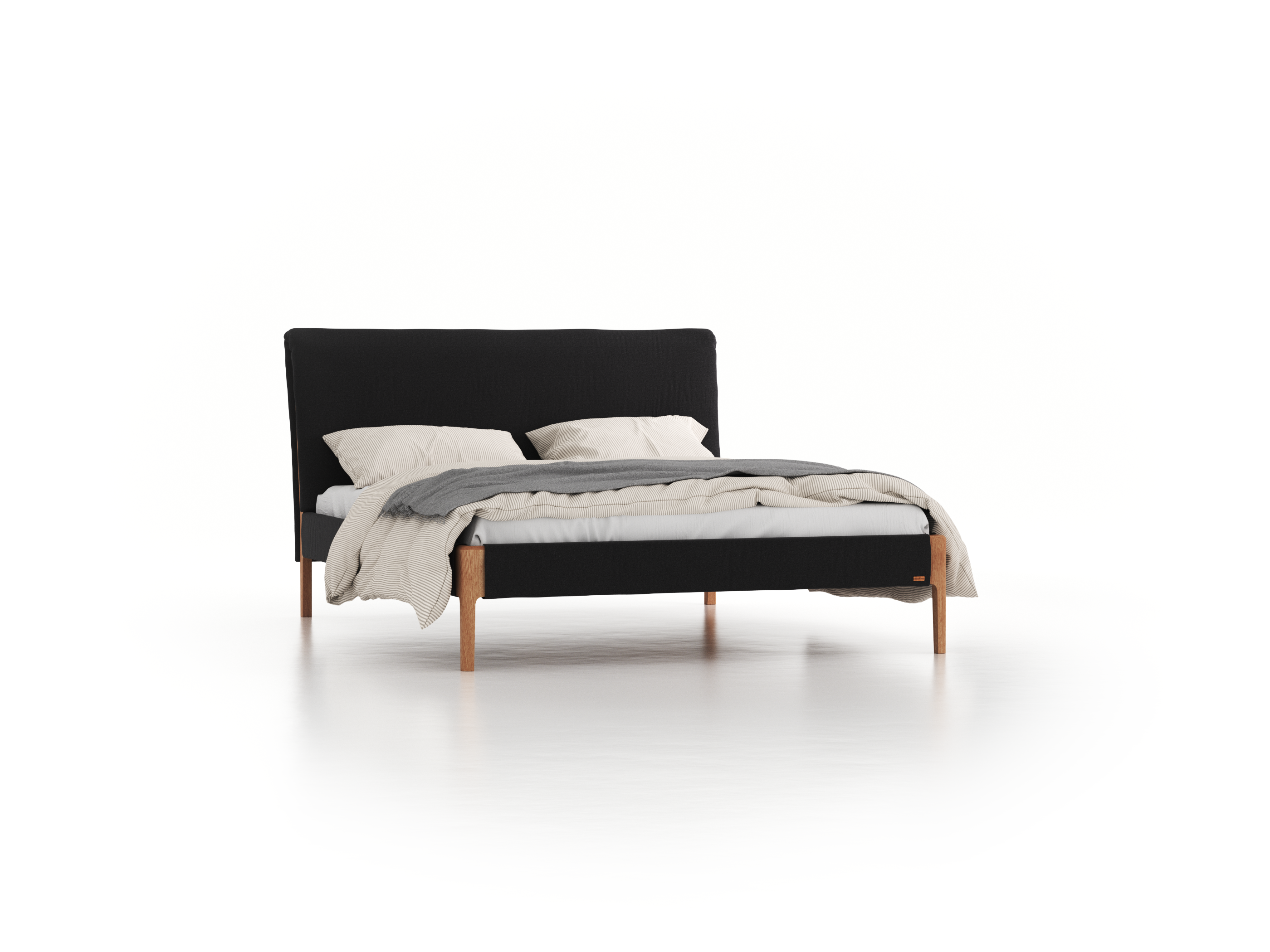 Bett Lorea mit Polsterbetthaupt, 160 x 200 cm, Wollstoff Kaland Schiefer (67), Eiche