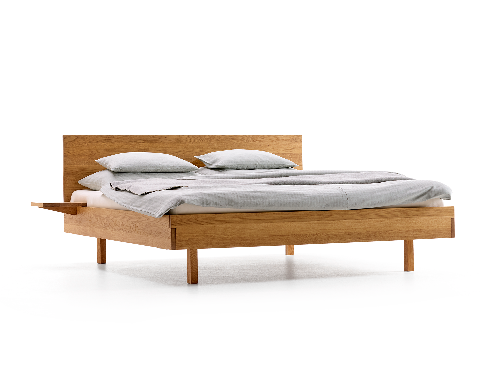 Massivholz aus nachhaltig bewirtschafteten Wäldern, handwerklich erstklassig verarbeitet, wieder lösbare, metallfreie Dübel-Steck-Verbindungen beim Bettrahmen; von Hand mit natürlichem Öl eingelassene Holzoberfläche.-