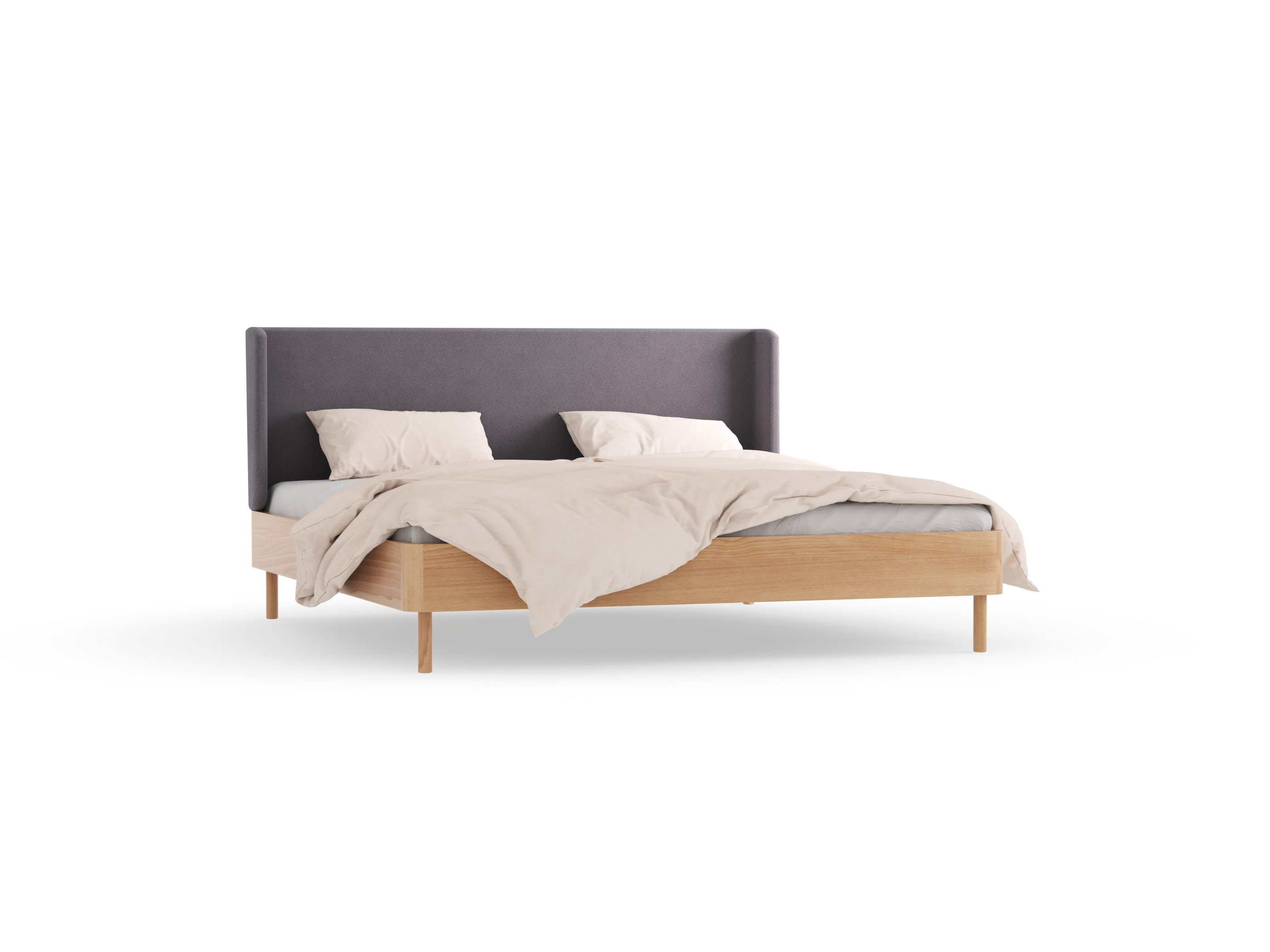 Harmonisch runde FormenDank nach innen versetzter Füße schwebender Charakter, harmonisch runde Formen und sanfte Eckradien: Die typischen Merkmale der gesamten Tonda-Möbelserie verbinden sich bei diesem Bett mit dem stilprägenden, nach innen gebogenen Polsterbetthaupt zu einem Geborgenheit schenkenden Ganzen. So wird der Schlaf in diesem Bett zum Genuss. Doch das bequeme, stabile Betthaupt von Tonda verheißt auch den Wachenden schöne Stunden, etwa beim Lesen.Material & FertigungWir fertigen das Bett aus mitteleuropäischem Massivholz: Buche, Eiche oder Zirbe. Betthaupt, Fußteil und Seitenwangen werden von passgenauen, bei Bedarf wieder lösbaren, metallfreien Holzsteckverbindungen (Lasche & Dübel) fest zusammengehalten. Die Holzoberfläche ist mit natürlichem, duftendem Pflegeöl eingelassen (Ausnahme: Zirbe bleibt unbehandelt).Zylindrische BettfüßeDie schlanken, zylindrischen Bettfüße lassen Tonda trotz des 21 cm hohen Bettrahmens optisch leicht erscheinen. Sie werden mit einem aus reißfestem Ahornholz gefertigten Gewinde an der Unterseite des Bettrahmens in ein ebenfalls hölzernes Gegengewinde gedreht: So etwas gibt’s nur in der Massivholztischlerei!Weiches, bequemes Betthaupt in 2 HöhenFür das bequeme Betthaupt wird eine Platte aus verwindungsfestem Pappelschichtholz in unserer Werkstätte mit weichem Kokoslatex und Schurwollfilz gepolstert, straff mit dem Möbelstoff Ihrer Wahl bezogen und mit sorgfältigen Nähten verarbeitet. So bietet das Bett nicht nur eine bequeme Lehne, etwa beim Lesen, sondern auch einen – wenn es frei steht – von allen Seiten schönen Anblick.Das Betthaupt kann in 2 Höhen gewählt werden: 68,5 cm (Gesamthöhe Bett 109 cm) oder 83,5 cm (Gesamthöhe 124 cm) – für hohe Matratzen wie unser Schlafsystem "Dreiklang".Individuelle LiegehöheDie Liegehöhe des Bettes lässt sich mithilfe unseres Höhenverstellungs-Sets um 3, 4, 5 oder 6 cm anheben – und damit Ihren individuellen Wünschen anpassen.