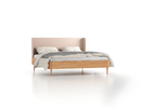 Die typischen Merkmale der Tonda-Möbelserie – schlanke, nach innen versetzte Füße, schwebender Charakter, harmonisch runde, charmante Formensprache und samtweich geschwungene Eckradien – verbinden sich bei diesem Bett mit dem nach innen gebogenen, weichen Polsterbetthaupt zu einem Geborgenheit, Trost und Schutz vermittelnden Ganzen. So wird das Schlafen in diesem Bett zu einem Seelenheil spendenden Genuss. Doch ein bequemes, stabiles Betthaupt wie jenes von Tonda verheißt auch dem Wachenden schöne Stunden – beim Lesen.Für den Betthauptbezug kann aus unseren NATURTEXTIL BEST-zertifizierten Möbelstoffen aus Schurwolle (Schaf) gewählt werden.Preise inkl. Aufstellservice, ohne Lattenrost, Matratze und Zubehör.Weitere Größen auf Anfrage. -
