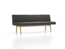 Getragen wird der Polsterteil von einem Fußgestell mit gerundeten Ecken und Kanten. Beide Teile sind von wieder lösbaren Holzsteckverbindungen fest zusammengehalten. Die nach innen versetzte Position der Bankbeine erleichtern die Bewegungsfreiheit der am Tisch Sitzenden. Schönes Designdetail: Die nach oben verlängerten Hinterbeine der Bank überlappen die Rückenlehne und stützen diese gleichsam. So macht Ketil auch freistehend gute Figur.