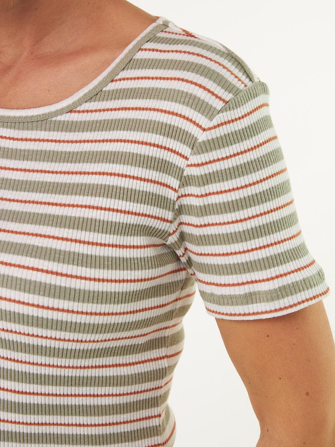 Kurzarmshirt Rippe aus Bio Baumwolle, 43 seegras/offwhite ringel, L, GOTS