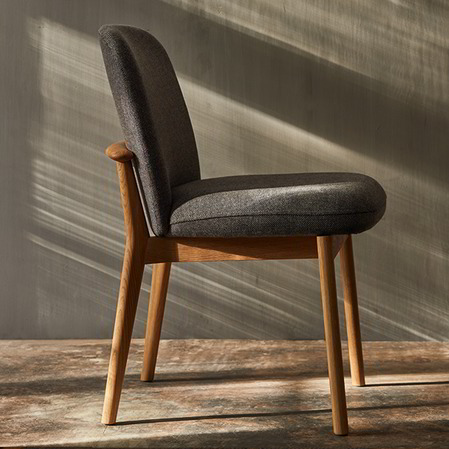 Die Polsterung wird getragen von einem optisch weichen, „handschmeichlerisch“ sanft verrundeten Massivholzrahmen, der auch die Rückenlehne stützt und in die Armlehnen übergeht. Schönes und nützliches Detail: Bei beiden Stuhlvarianten ist diese Rückenstütze an ihrer Unterseite mit einer sanften Griffmulde versehen. So lässt sich Kilian gut anheben und mühelos bewegen.
