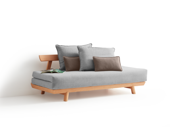 – Durch das Andocken des Hockers an das 3er-Sofa Lorea entsteht ein relativ kompaktes, kostengünstiges, flexibles Lounge-Sofa, das sich auch gut für kleinere Wohnzimmer eignet.