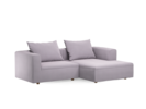 Dieses "Sereno Special" ist maßgeschneidert für Single- und Zwei-Personen-Haushalte und/oder kleinere Wohnzimmer, in denen eine klassische "Wohnlandschaft" zuviel Platz beanspruchen würde. Denn aus diesem Lounge-Sofa und Hocker kann spontan und mit wenigen Handgriffen eine großzügige, aber eben nicht raumfüllende Komfortzone gemacht werden.Das Lounge-Sofa mit den kompakten (Außen)Maßen 246 x 162 cm besteht aus einem Sitz- und einem links oder rechts fix ankoppelbaren Liegeteil. Kombiniert man das Lounge-Sofa nun bündig mit dem Hocker, entsteht eine geschlossene Polsterfläche von 140 x 200 cm, die zum bequemen Sitzen, Loungen und Schlafen einlädt. Die Füße des Hockers sind mit rutschfesten Naturkautschuk-Gleitern versehen, sodass er nicht fix mit dem Sofa verbunden werden muss – und daher einfach handhabbar und mobil ist.