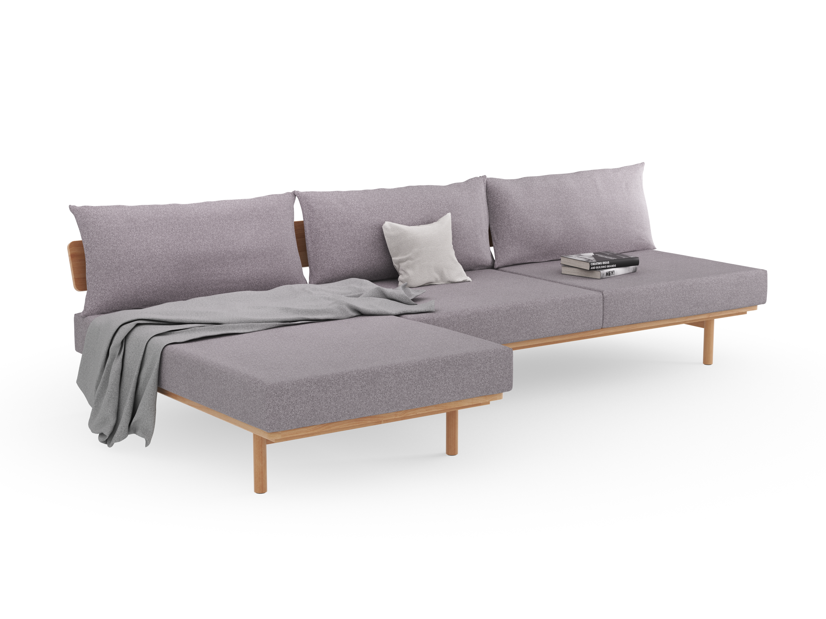 Loungesofa Lana, 300 x 160 cm mit Liegeteil links/rechts, Wollstoff Stavang Stein (61), Buche